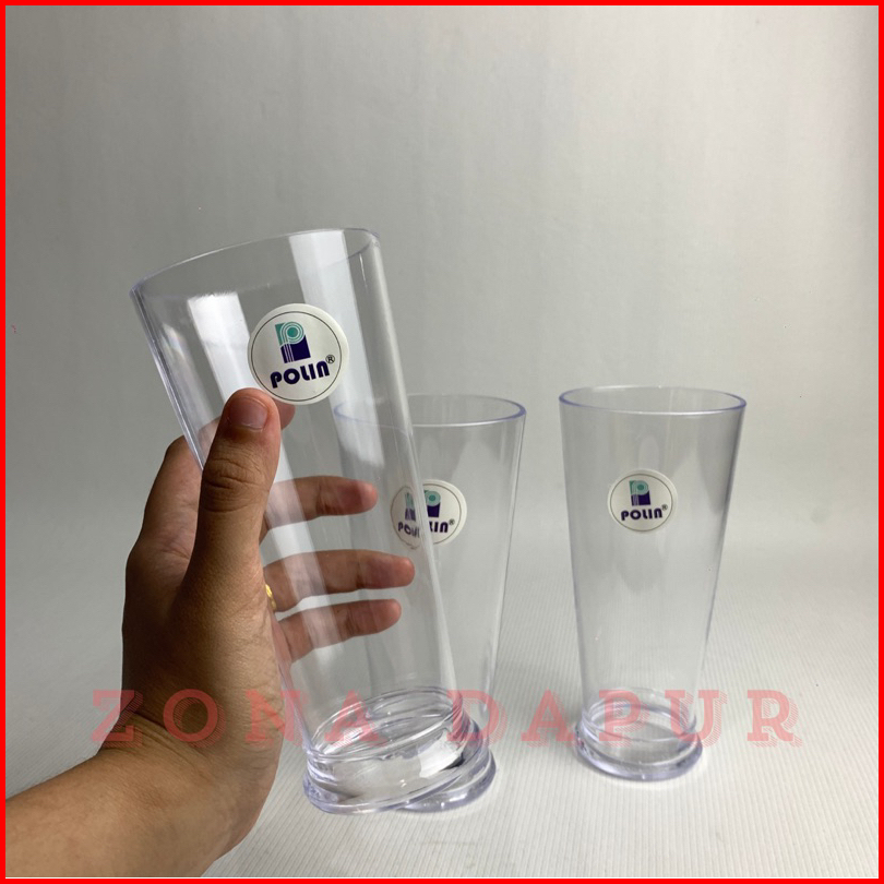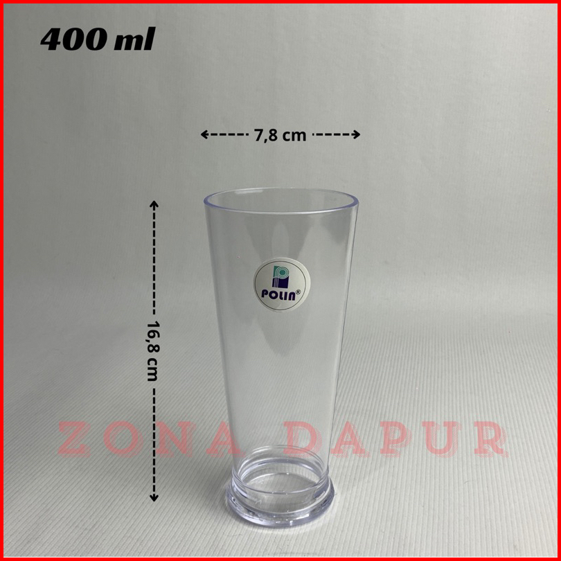 1 Lusin - Gelas Jus Plastik Bening 400 Ml Polin - Gelas Mika Bening - Gelas Jus Milkshake Ala Cafe