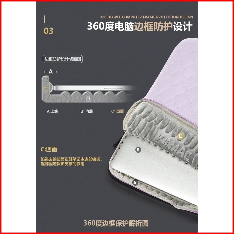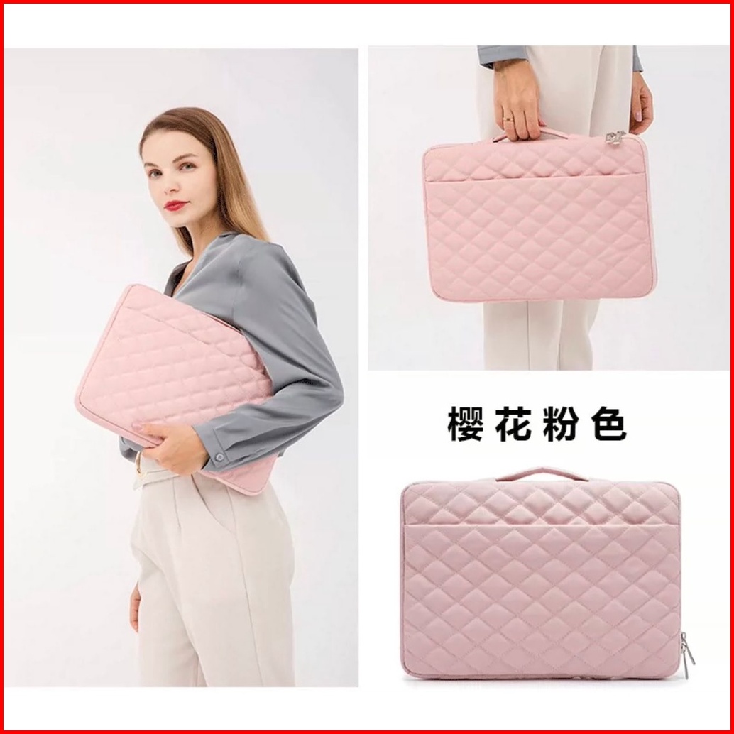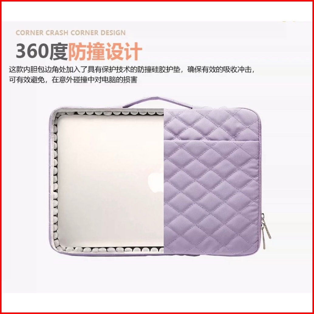 Tas Laptop Macbook Kinmac Diamond Quilted Shockproof Handstrap Size 13 14 15 16 Inch