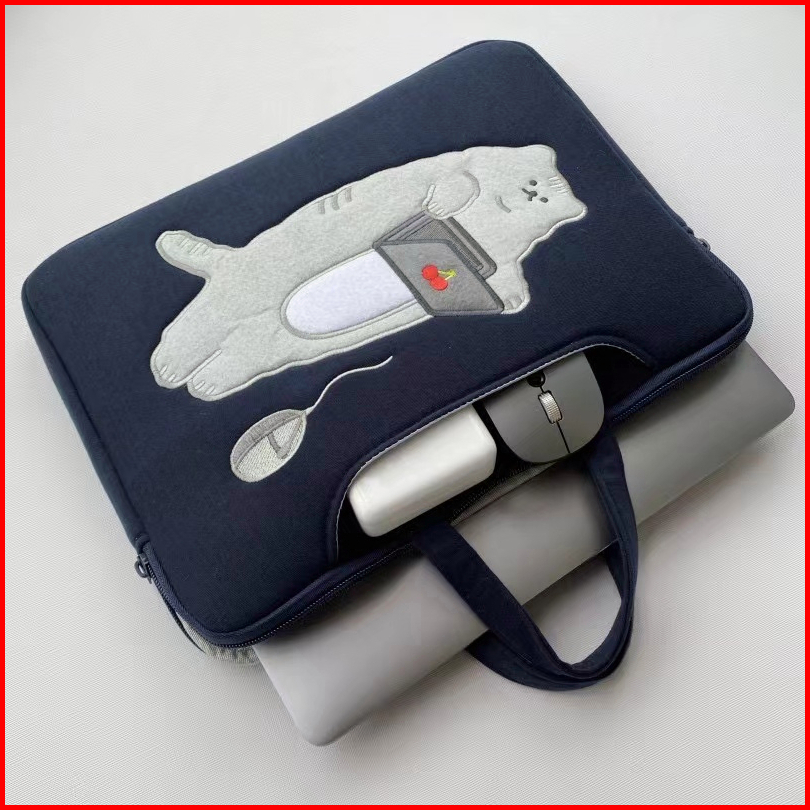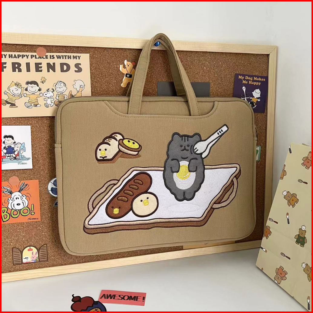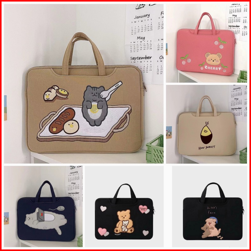 Tas Laptop Sleeve Case Tahan Guncangan Bordir Tangan Gaya Korea 13 14 15 16inch