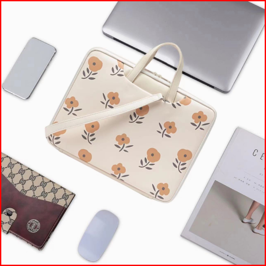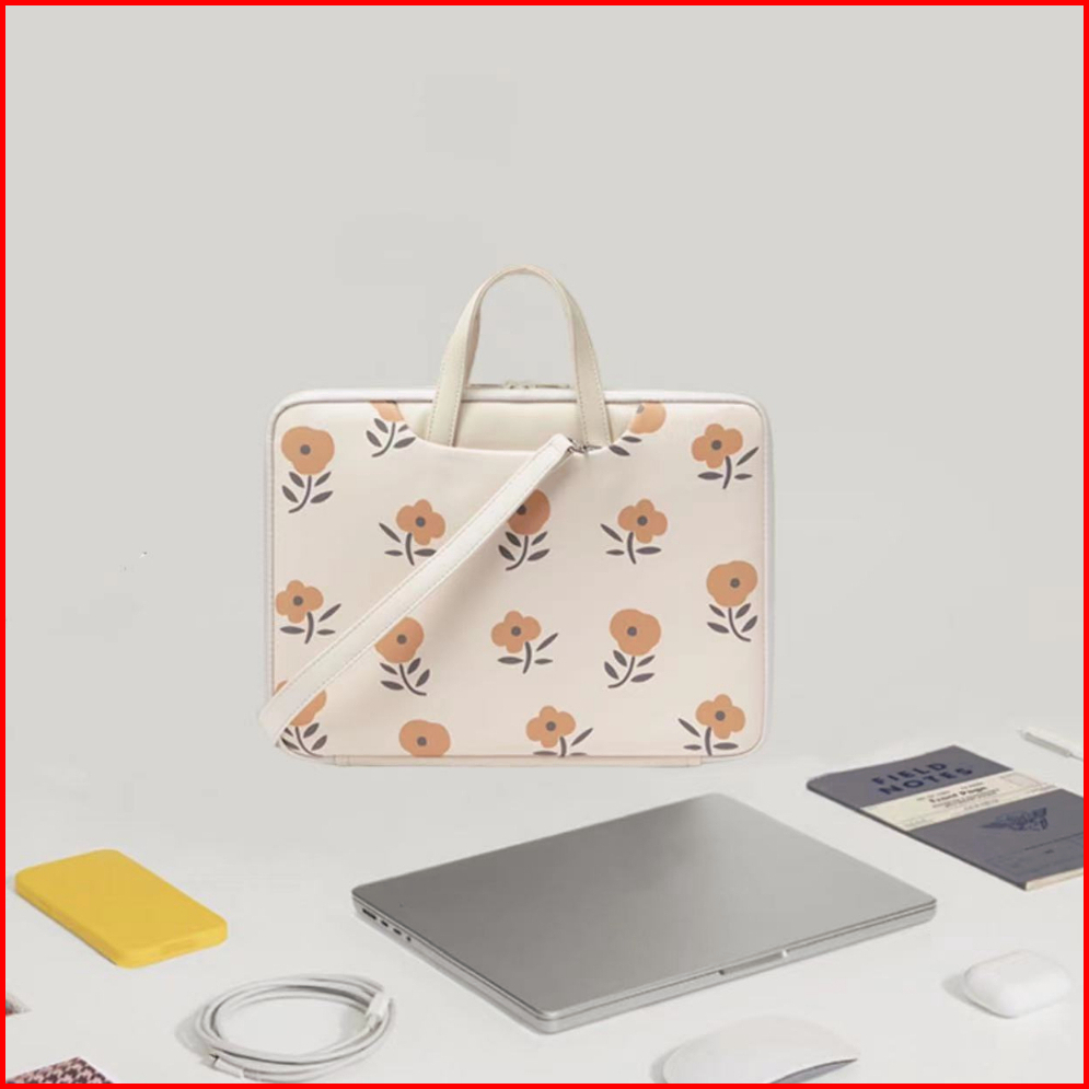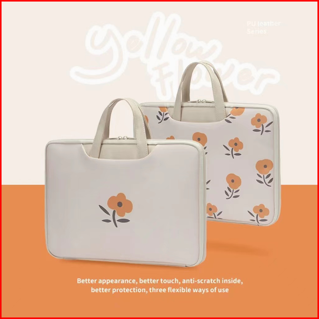 Tas Laptop Elegan Bunga Kuning Kantor Laptop Diagonal Tas Wanita 13-15.6 Inch Lengan Laptop Tahan Guncangan