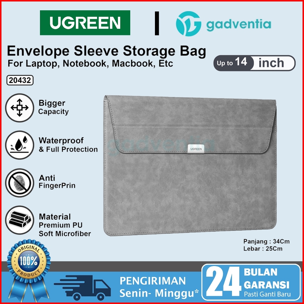 Ugreen Tas Laptop Notebook Mackbook Ipad Air Pro Sleeve Bag Envelope 14 Inch Untuk Kerja Kantor Office