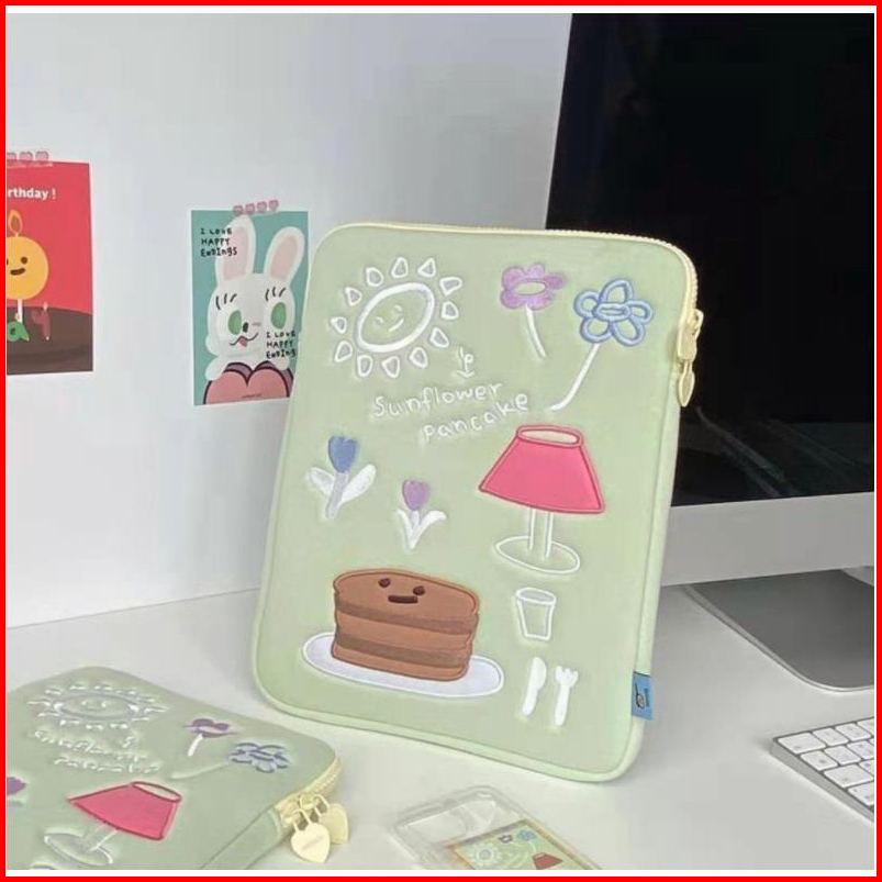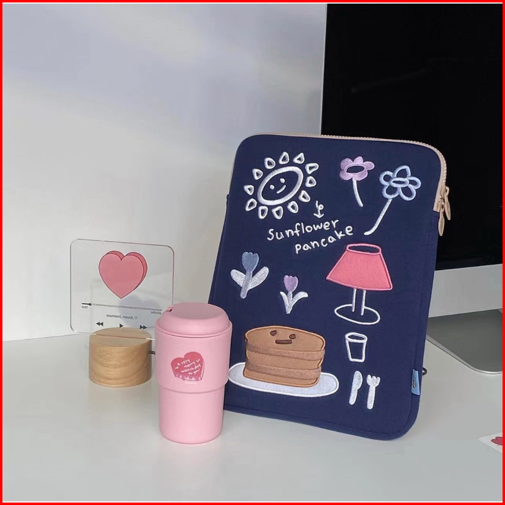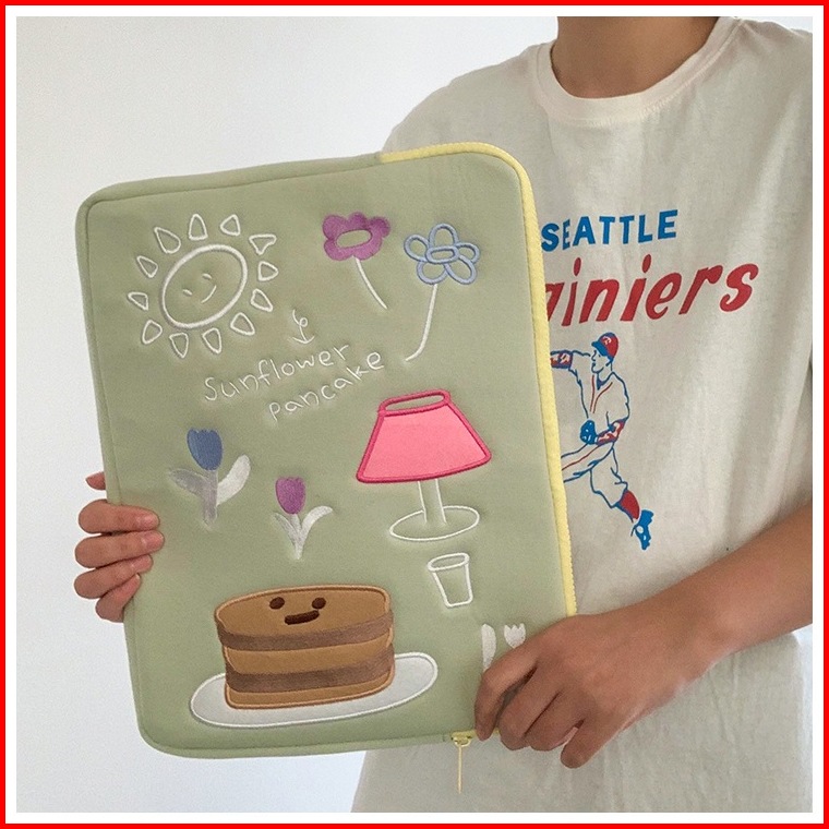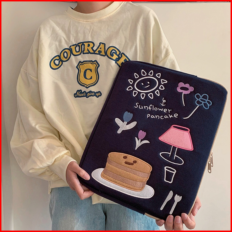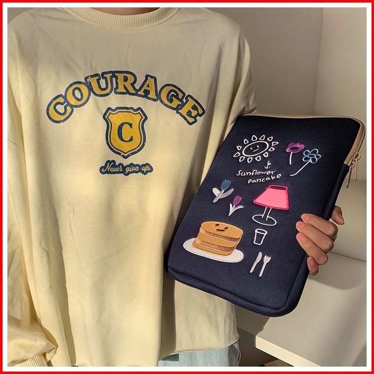 Tas Laptop Sleeve Case Tas Lengan Bordir Cantik Korea Muat Pad 10 11inch 13-15 Inch Notebook Tipis Dan Ringan