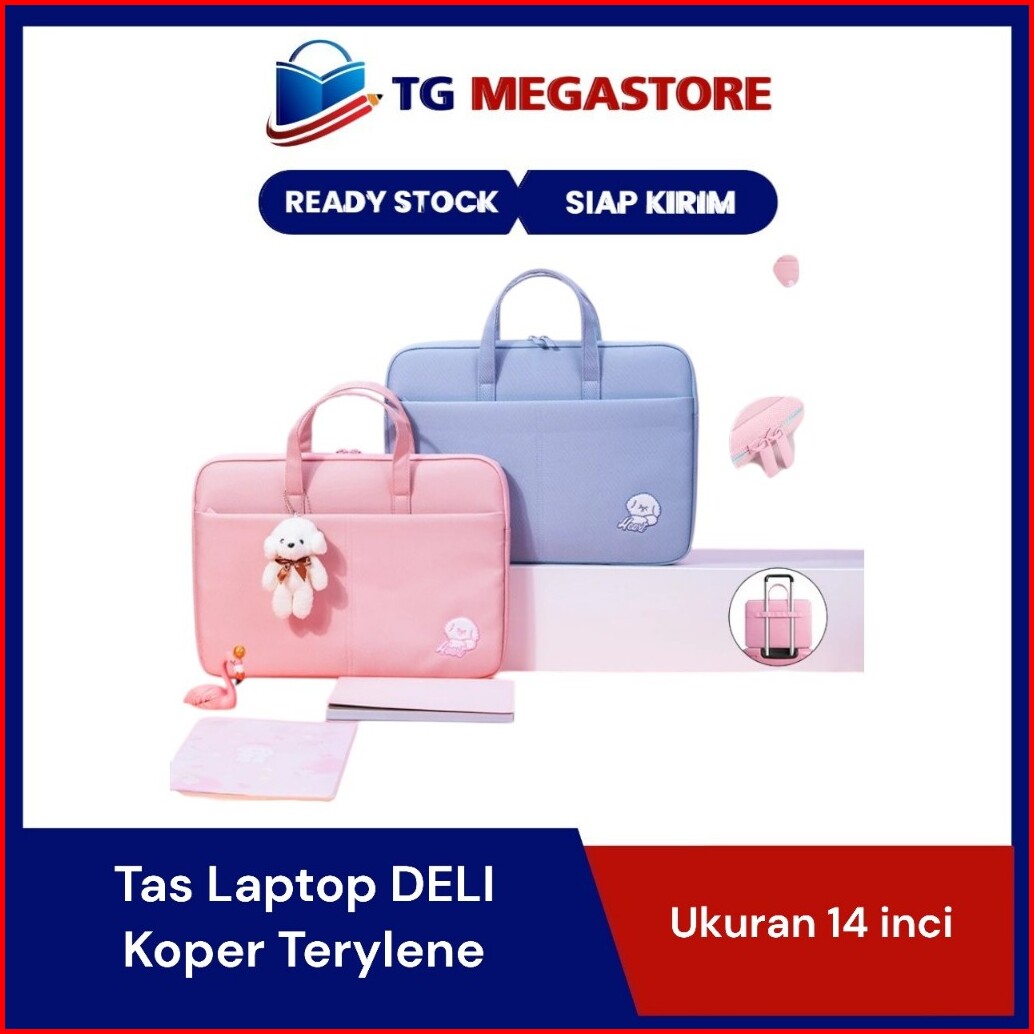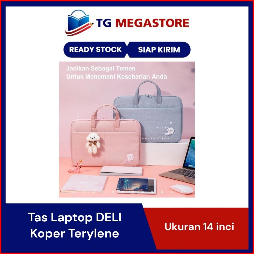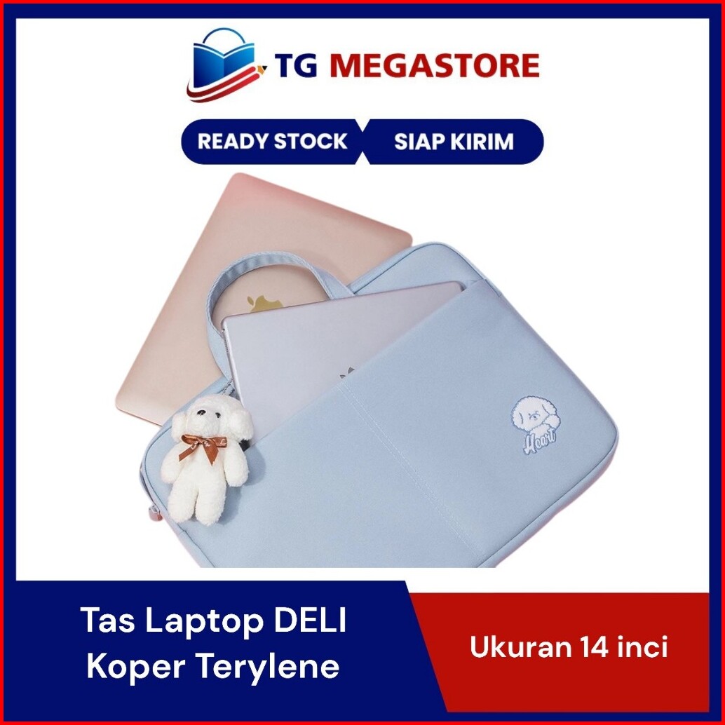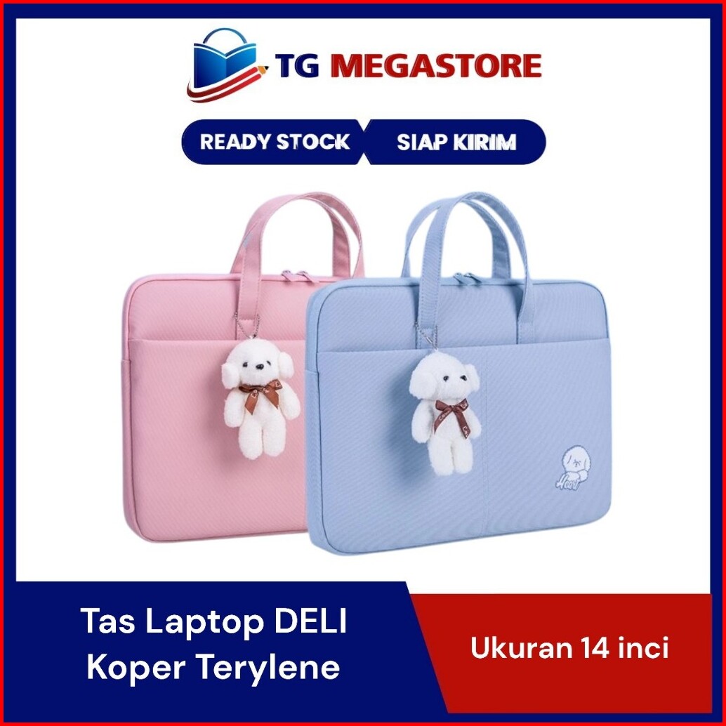 Tas Laptop Deli 14 Inch Aesthetic Lucu Wanita Pria Bahan Tebal Lapis Busa Free Boneka - 3756