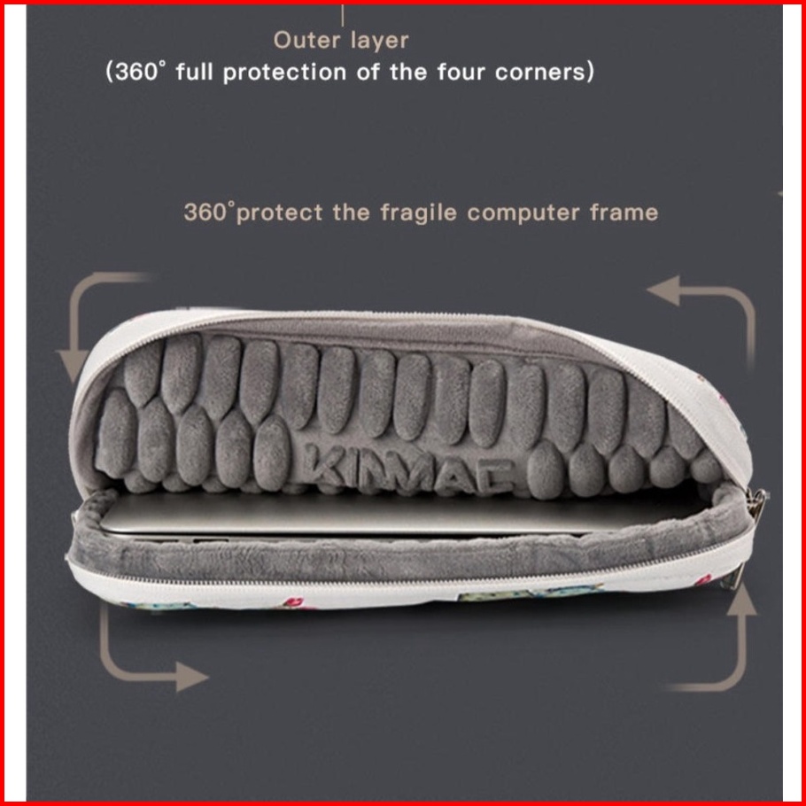 Kinmac Camellia Selempang Tas Laptop Macbook Sleeve Waterproof Shockproof Ukuran 13 - 16 Inch