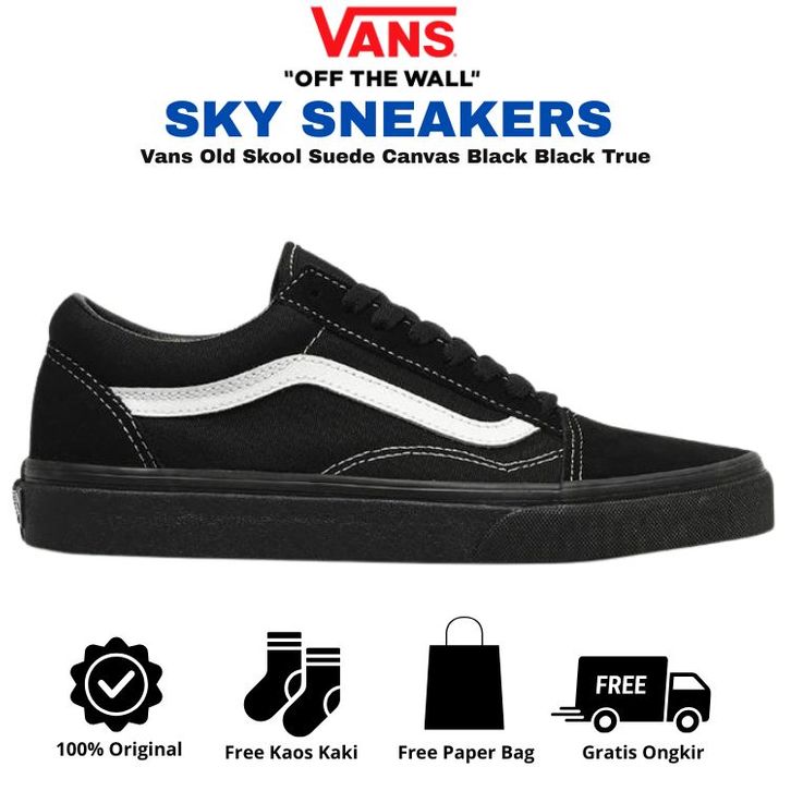 [Mall] SEPATU VANS ORIGINAL SNEAKER PRIA WANITA VANS OLD SKOOL SUEDE CANVAS BLACK BLACK TRUE SEPATU KASUAL AUTHENTIC
