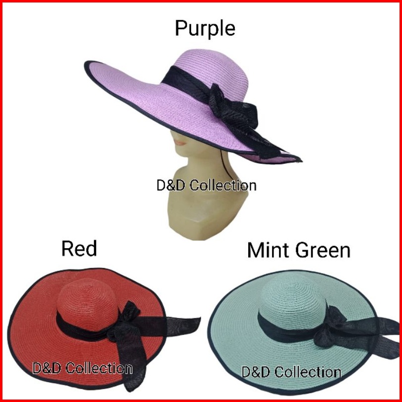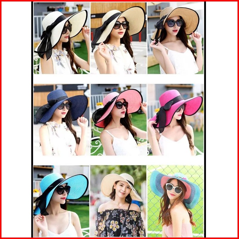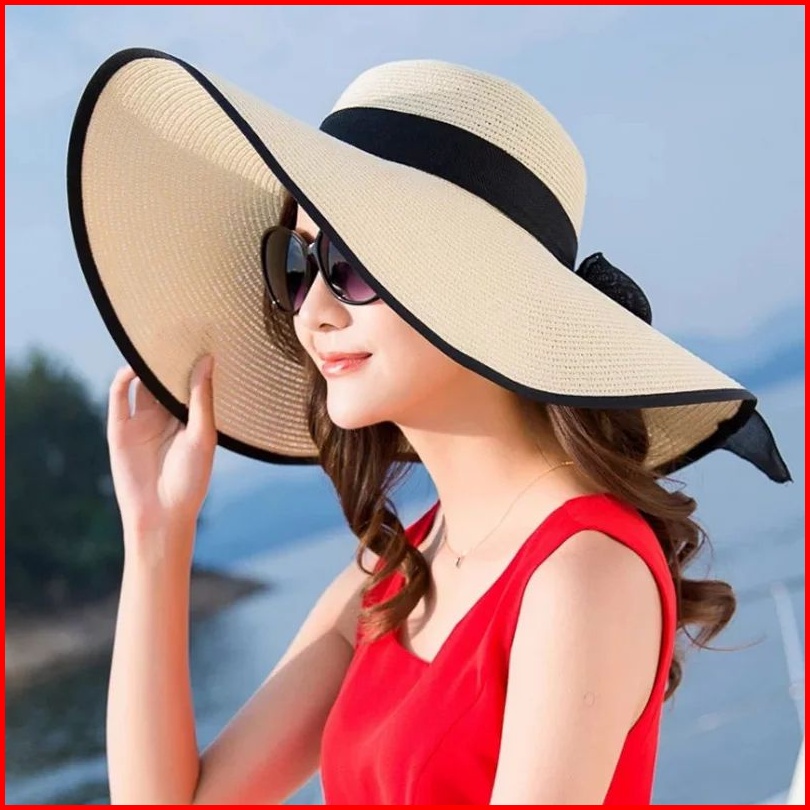 Topi Pantai Lebar Import Pita Strip Hitam