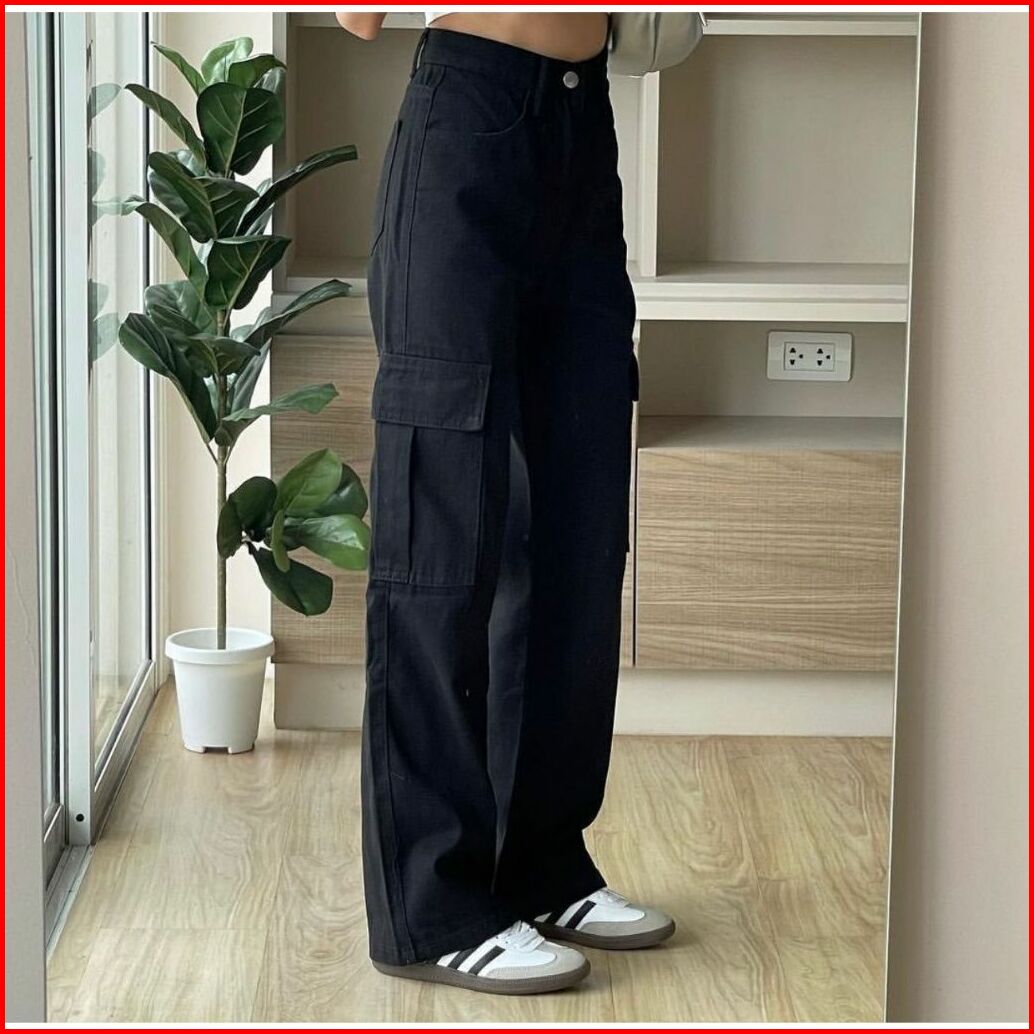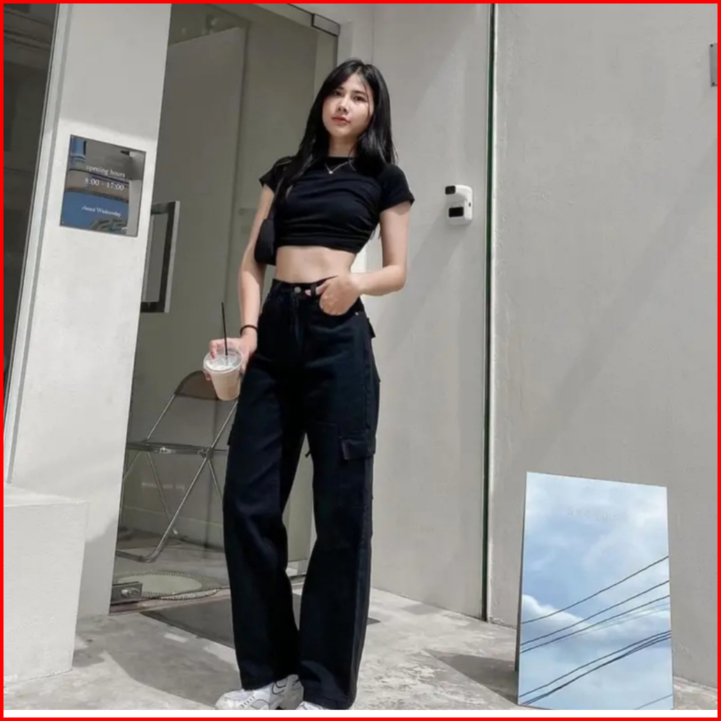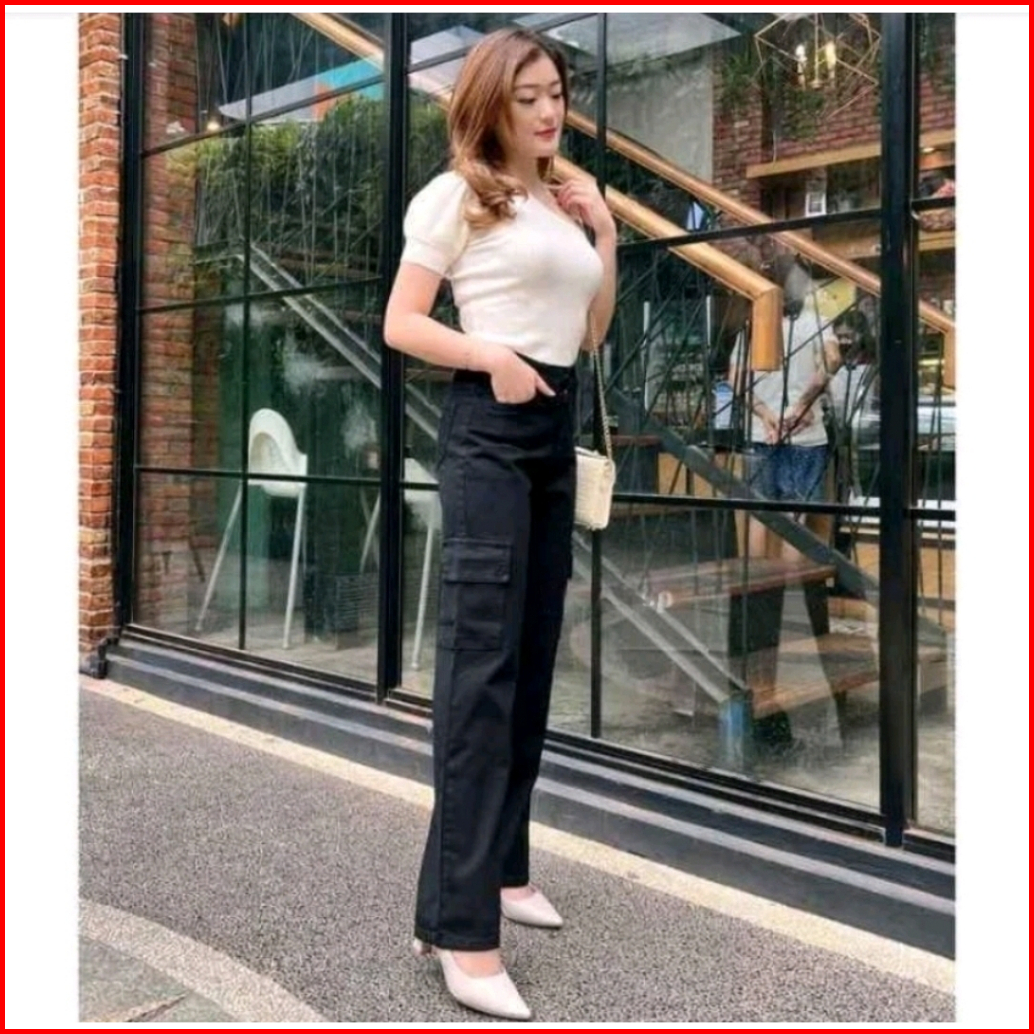 Celana Jeans Cargo Highwaist Wanita Loose Jins