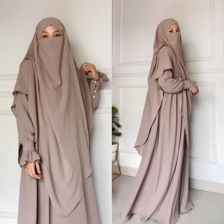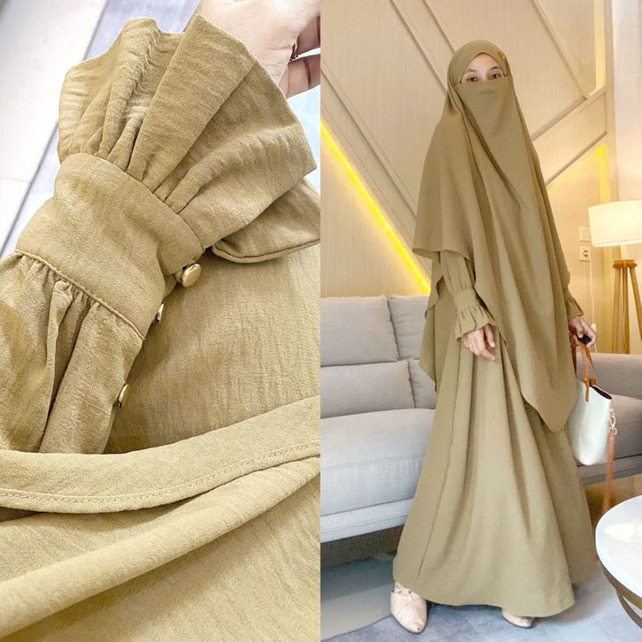 Spesialis Gamis Murah | Jennaira Gamis Syar'i set French Khimar | Abaya Crincle Airflow | Abaya Murah Syar'i Set Crincl