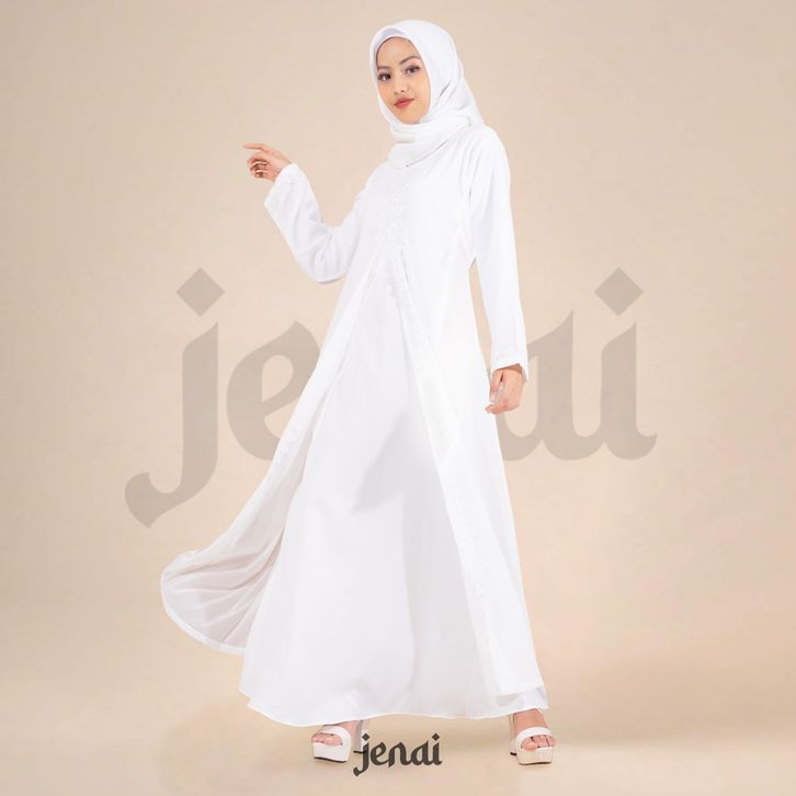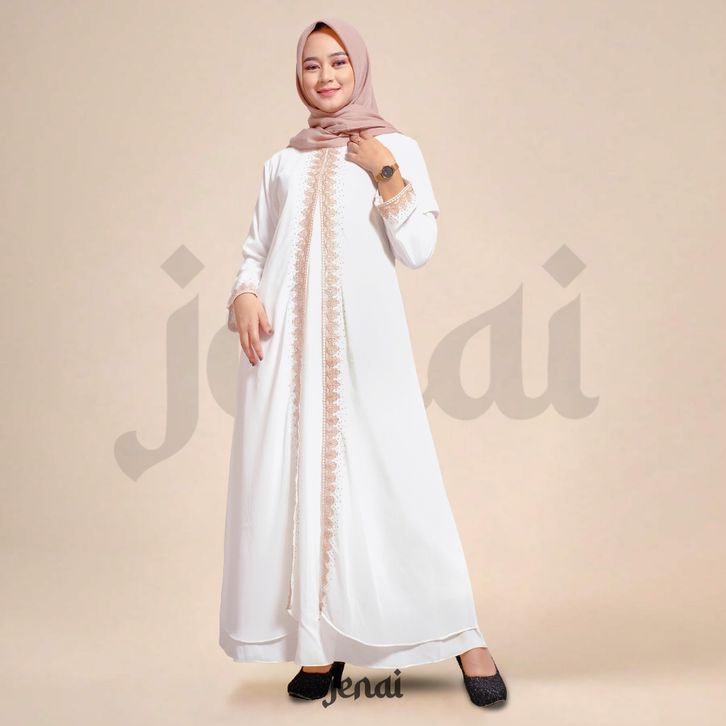 JENAI Gamis Abaya Putih Wanita Mewah Dan Elegan Terbaru Abaya Turkey Putih Kekinian