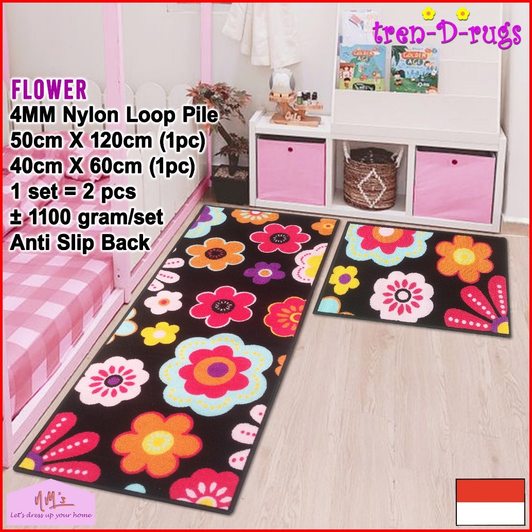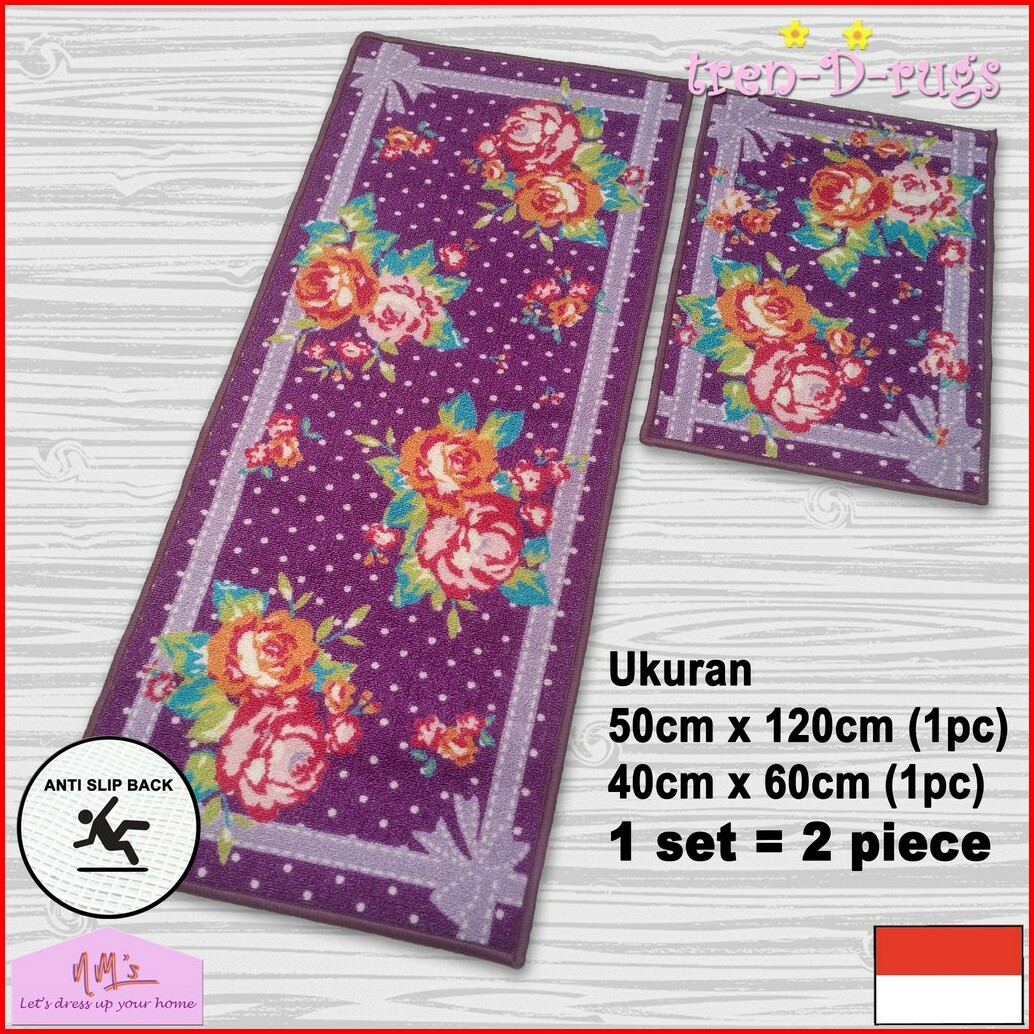 Tren-d-rugs Keset Kaki Panjang Dapur Lorong Runner Kitchen Mat Murah Anti Slip 1 Set 2 Pcs - Nms