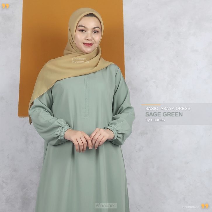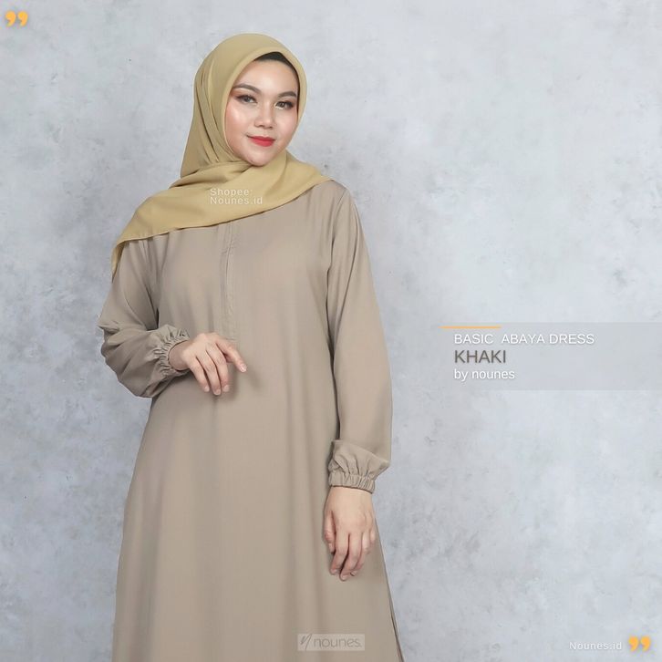 Nounes Basic Abaya Dress Gamis Daily Polos Wanita Saku Kanan Matt Woolpeach9rade A