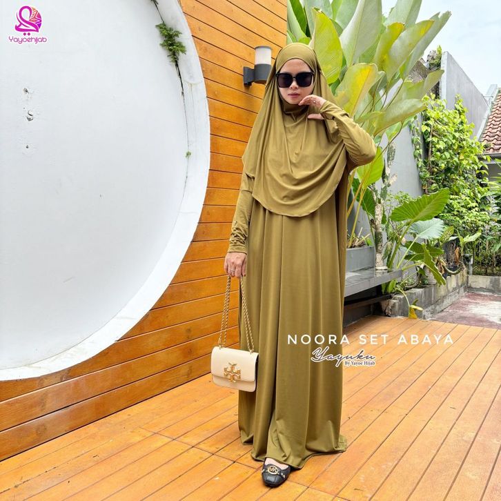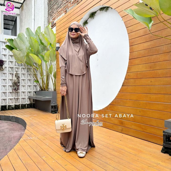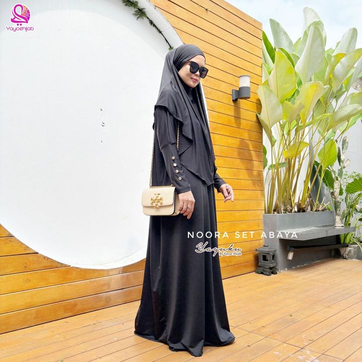 Noora Set Abaya Hijab Polos Lengan Batwing Wudhu Friendly Jersey Premium Yayuku by Yayoehijab