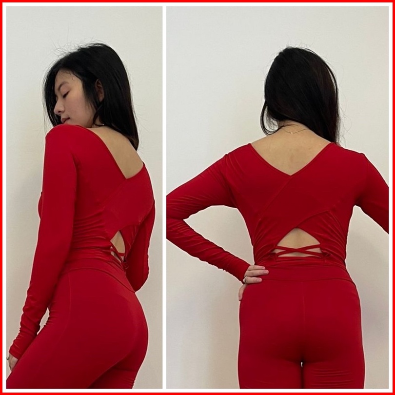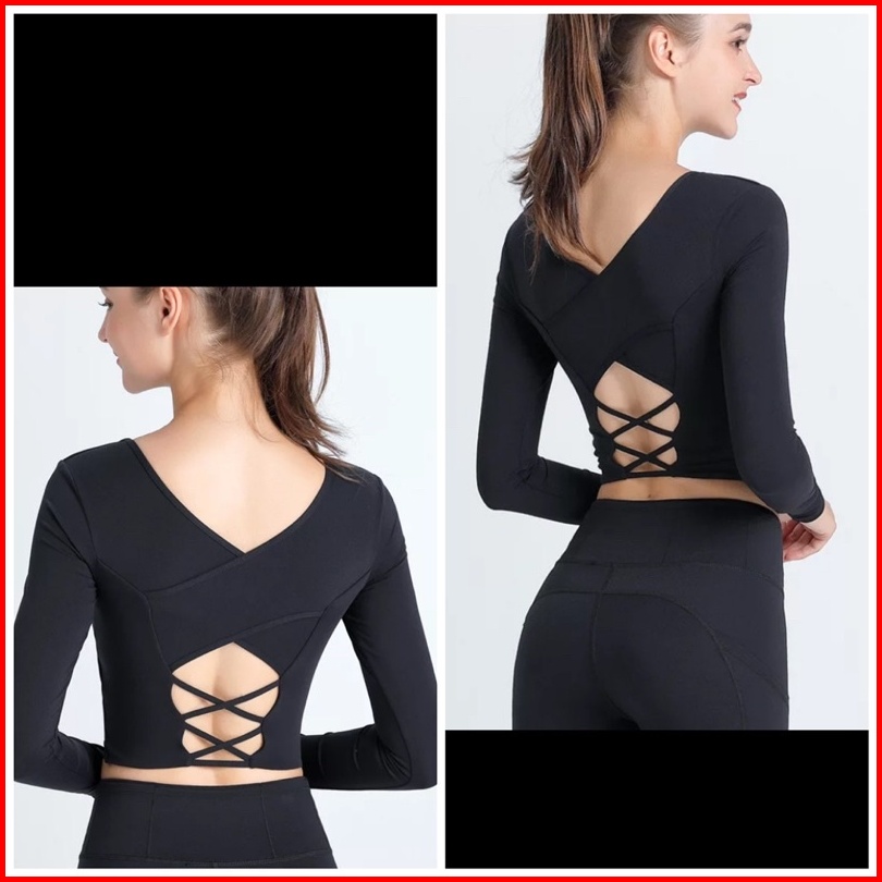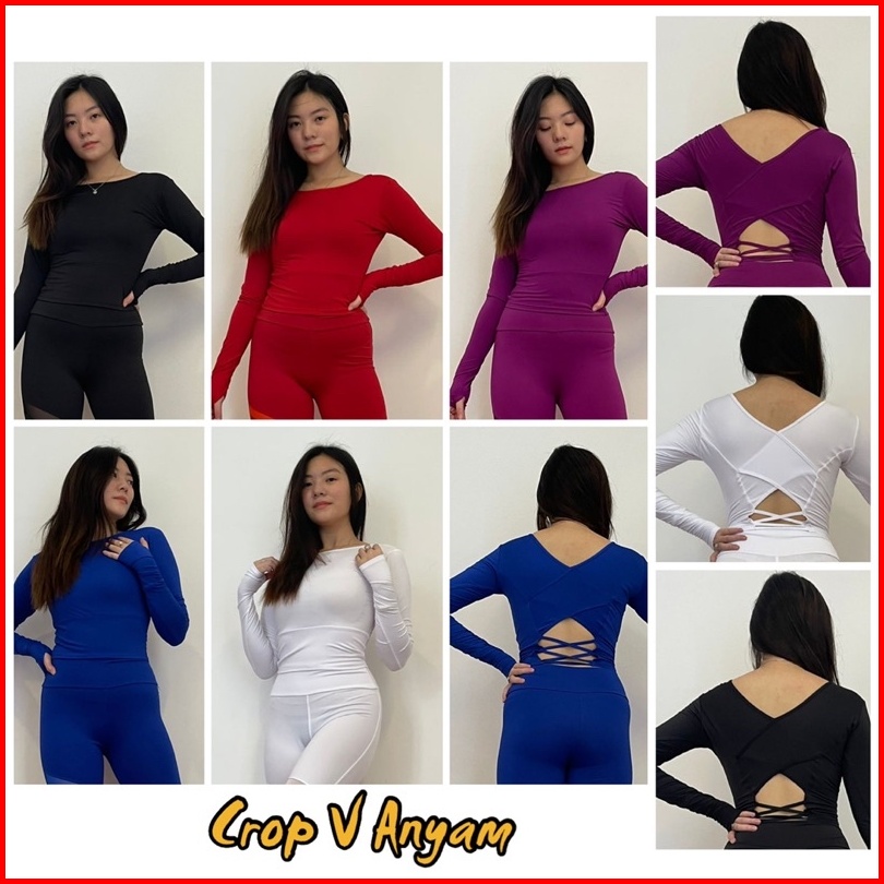 Atasan Senam Aerobik Zumba Yoga Gym Fitness Model Crop V Anyam Panjang