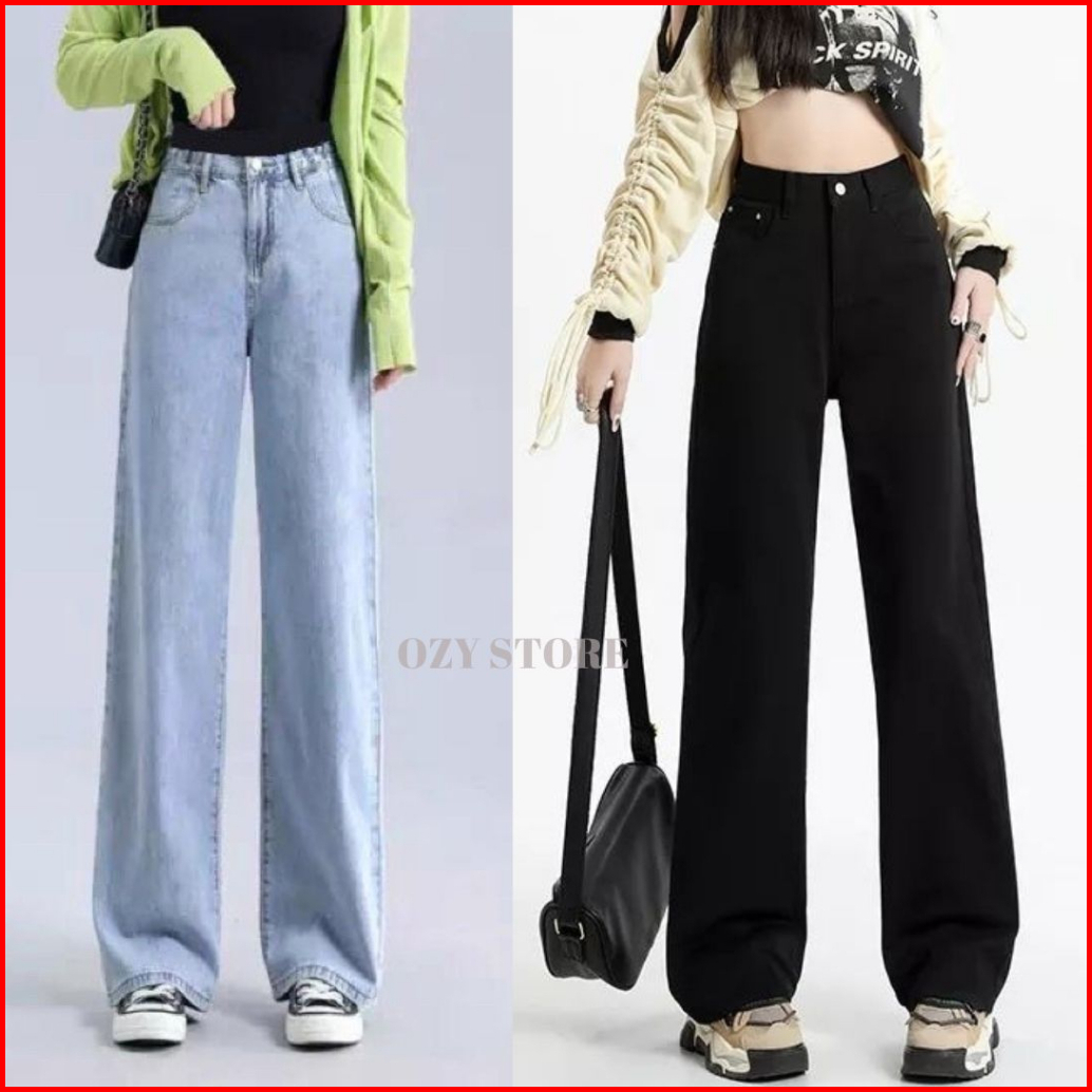 Highwaist Kulot Jeans Wanita Loose Black Hangover L2