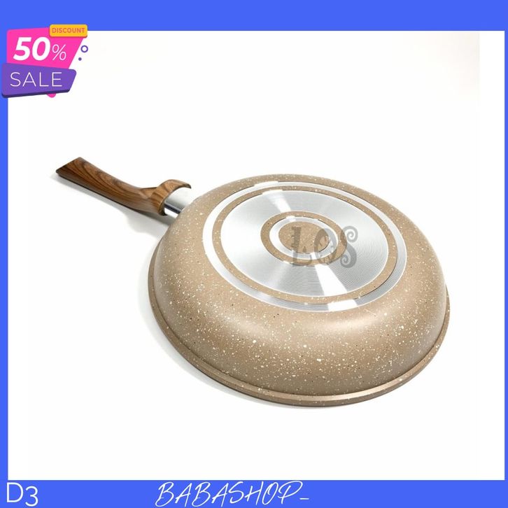 Marble Coating Non-Stick Wok Pan 20, 24 , 26 , 28, 32 cm + Tutup Kaca Panci Wajan Penggorengan Anti Lengket