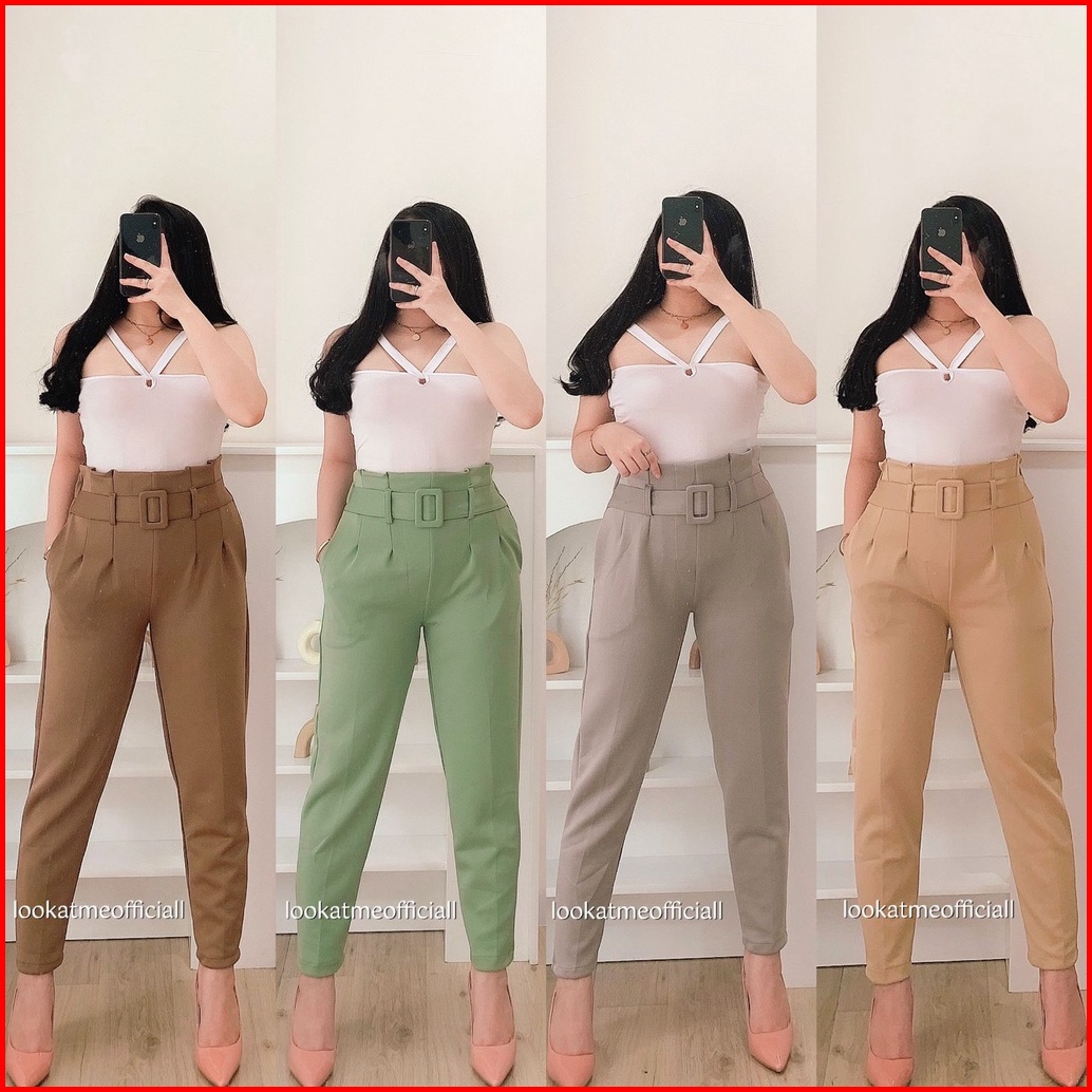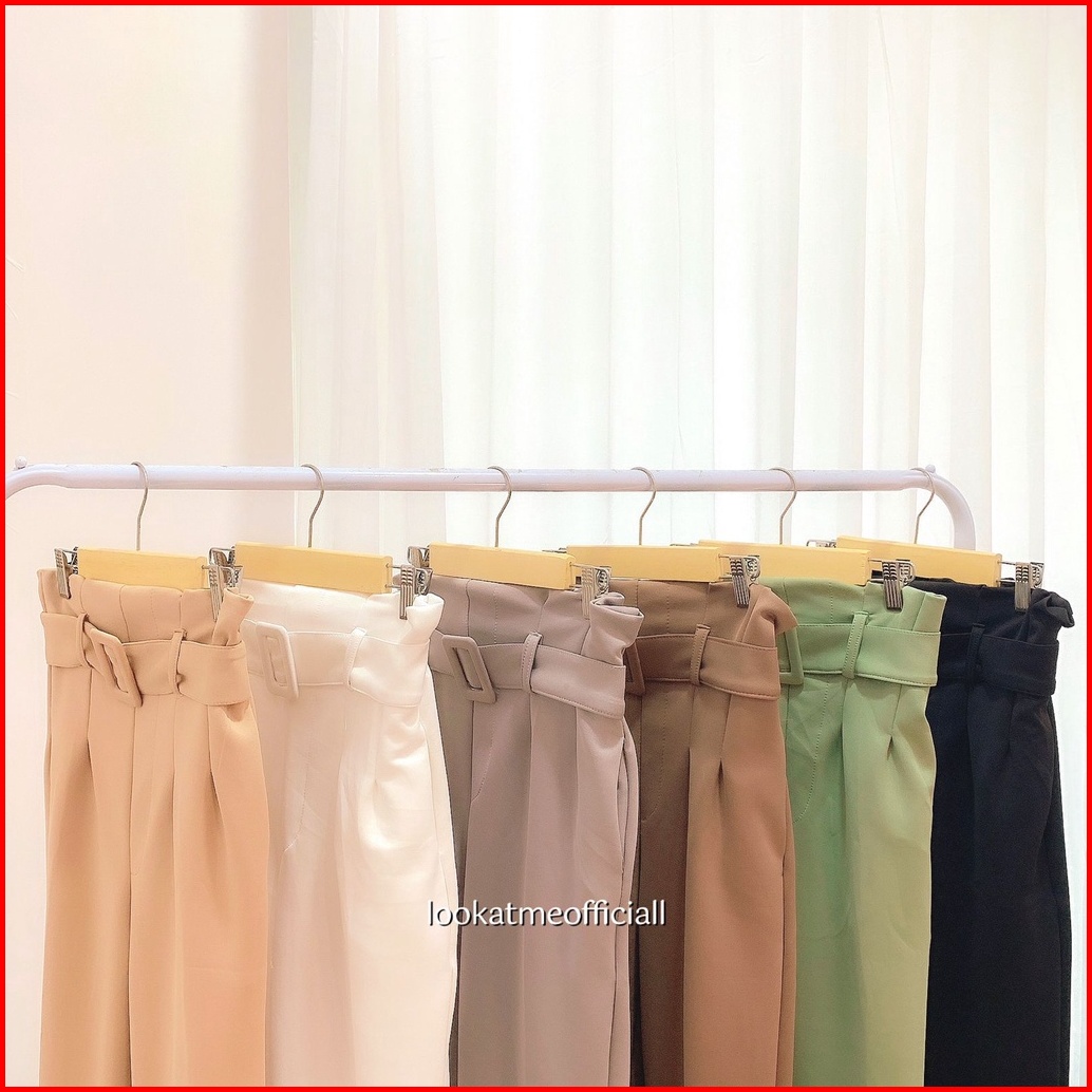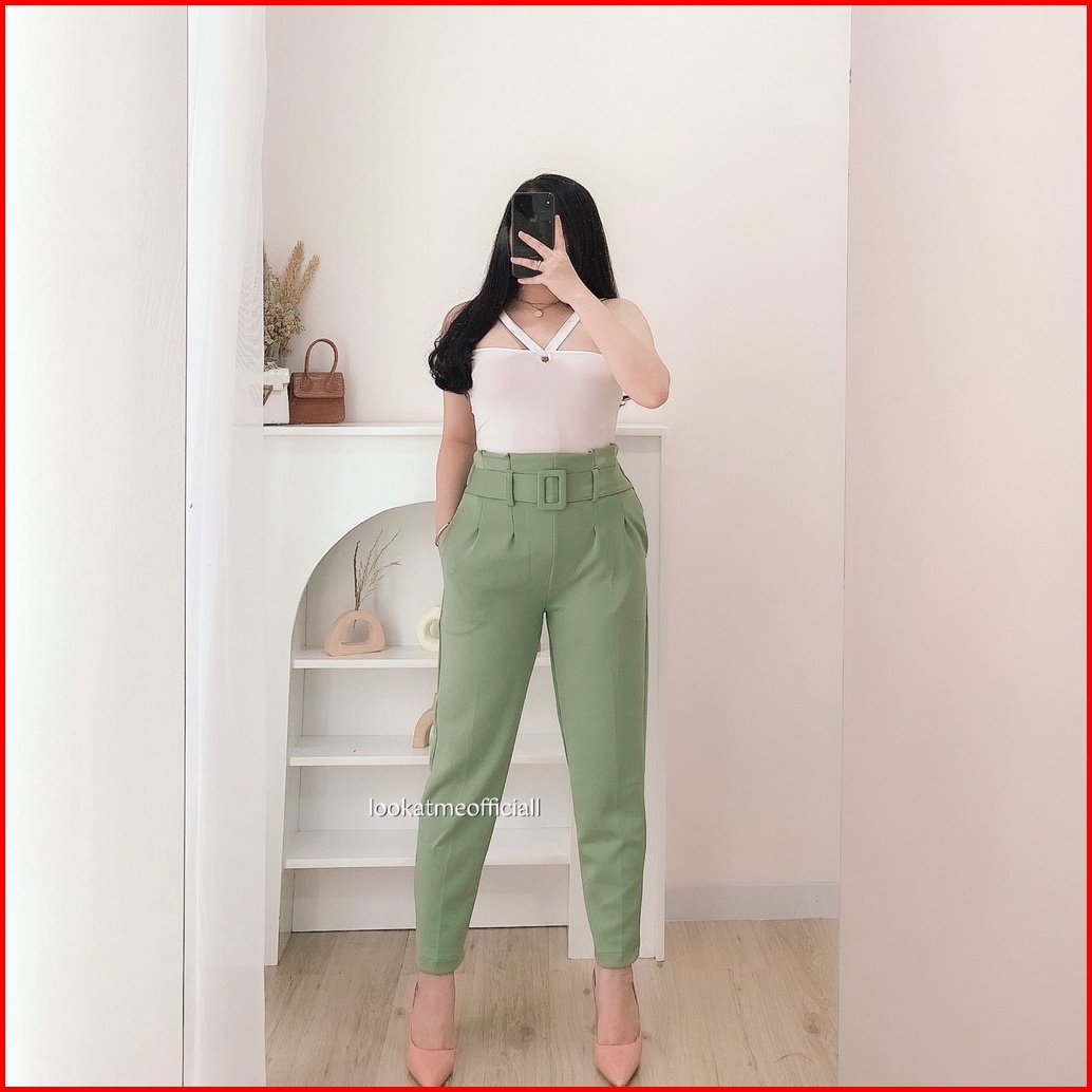 Lookatmeofficial Celana Highwaist Scuba Office Belt Pants - Celana Kantor Wanita