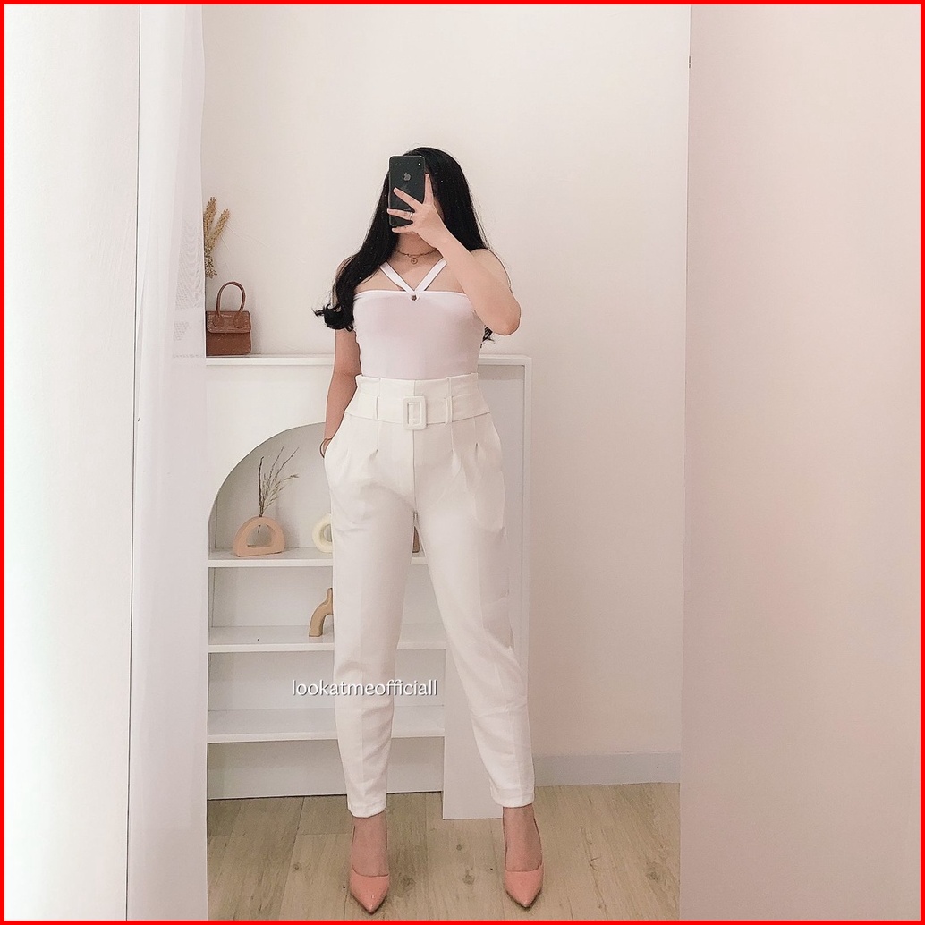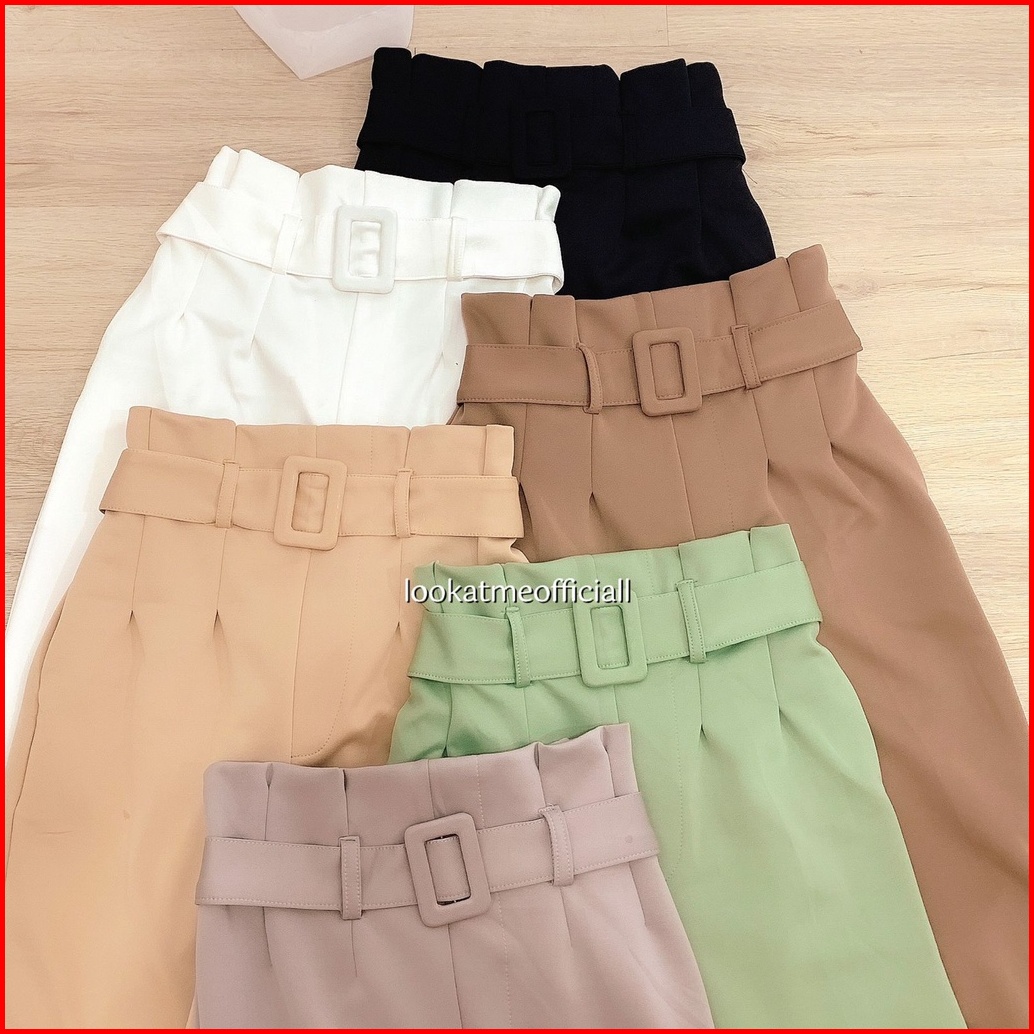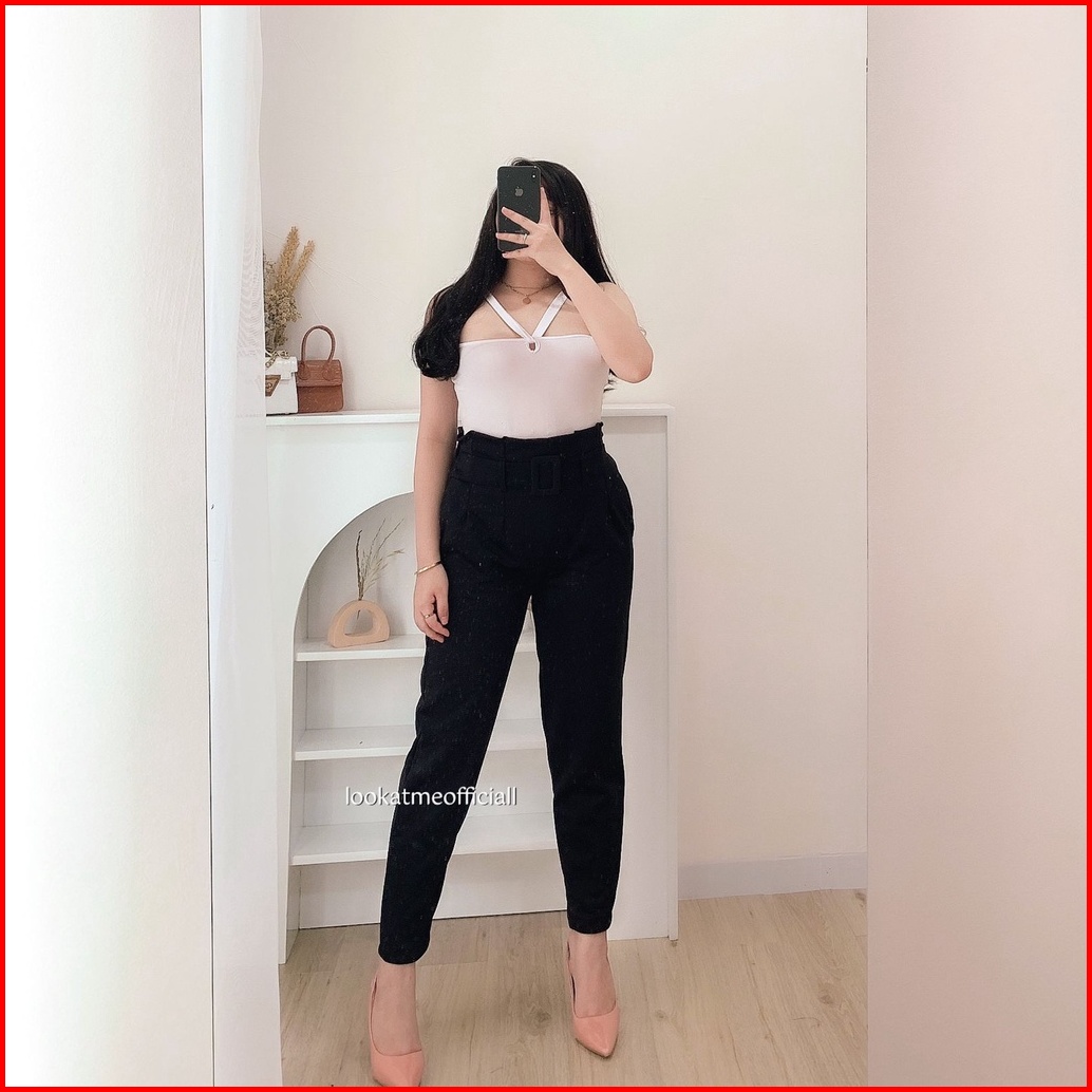 Lookatmeofficial Celana Highwaist Scuba Office Belt Pants - Celana Kantor Wanita
