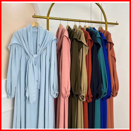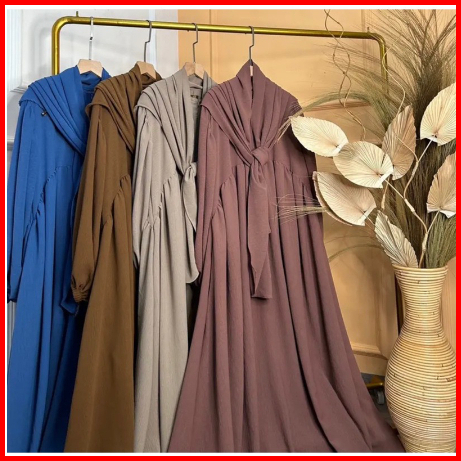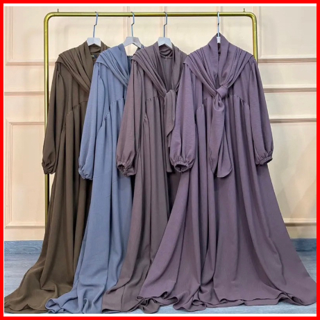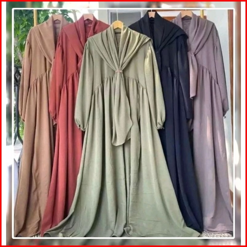 Gamis Luna Bonus Hijab Syar I Gamis Wanita Bahan Crinkle Airflow Ada Kantong