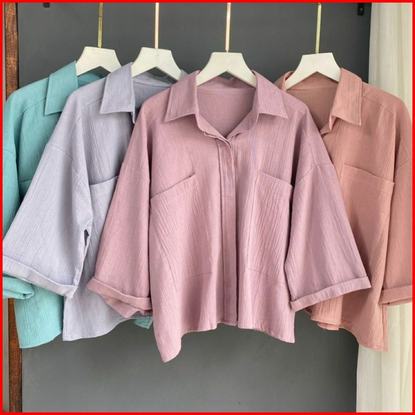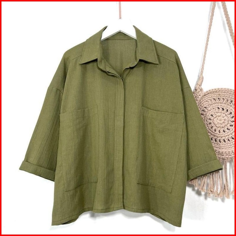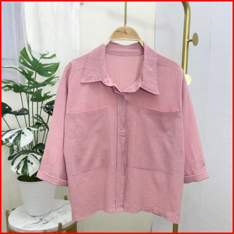 Kemeja Linen Wanita Atasan Wanita Korean Style Kemeja Kantong Terbaru