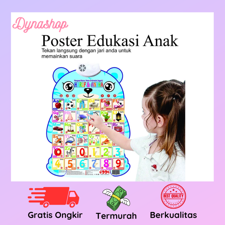 Poster Edukasi Suara Anak Belajar Bahasa Indonesia Arab Inggris Mandarin / Dynamight Shop