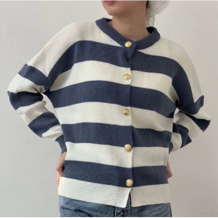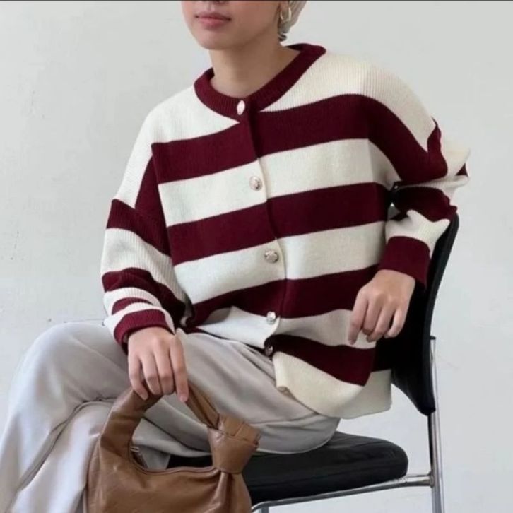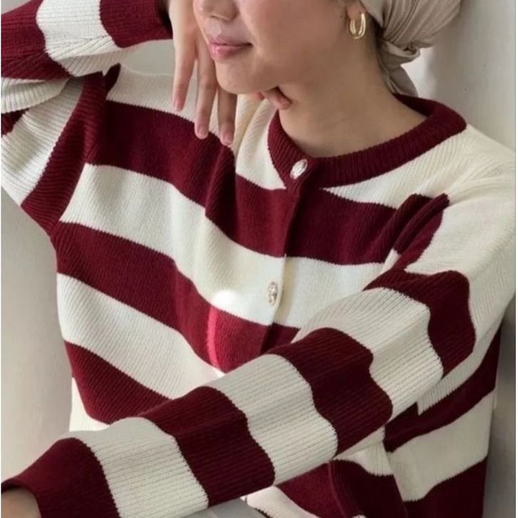 HECTIC Alice Knit Cardigan Premium - Cardigan Stripe Wanita Bahan Rajut Premium - Cardy Blaster Kancing Belang