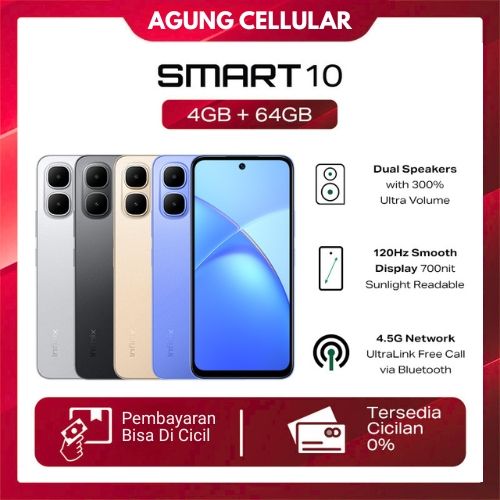 Hp Infinix Smart 10 Ram 4/64GB Up To 8GB Baterai 5000mAh Infinix Official Store Hp Murah Infinix Smart 10