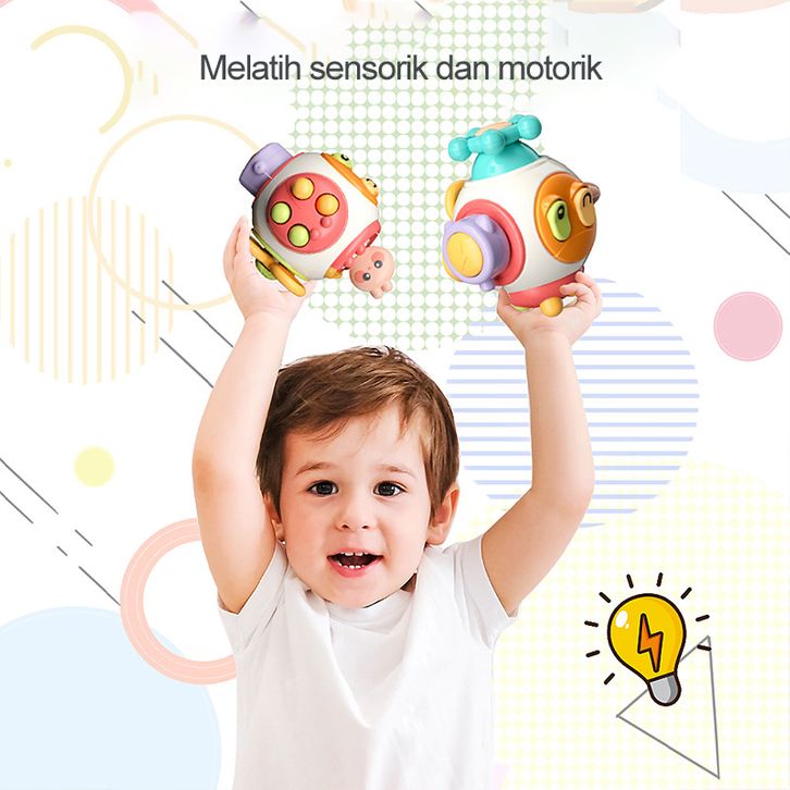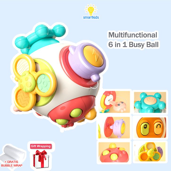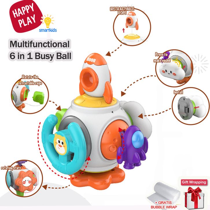 Busy Ball fitur 6 in 1 / melatih logika motorik sensorik tangan jari / mainan anak edukasi Montessori / busy cube box
