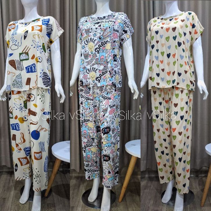 Baju Tidur Wanita Piyama Rayon / Babydoll Rayon Motif Terupdate