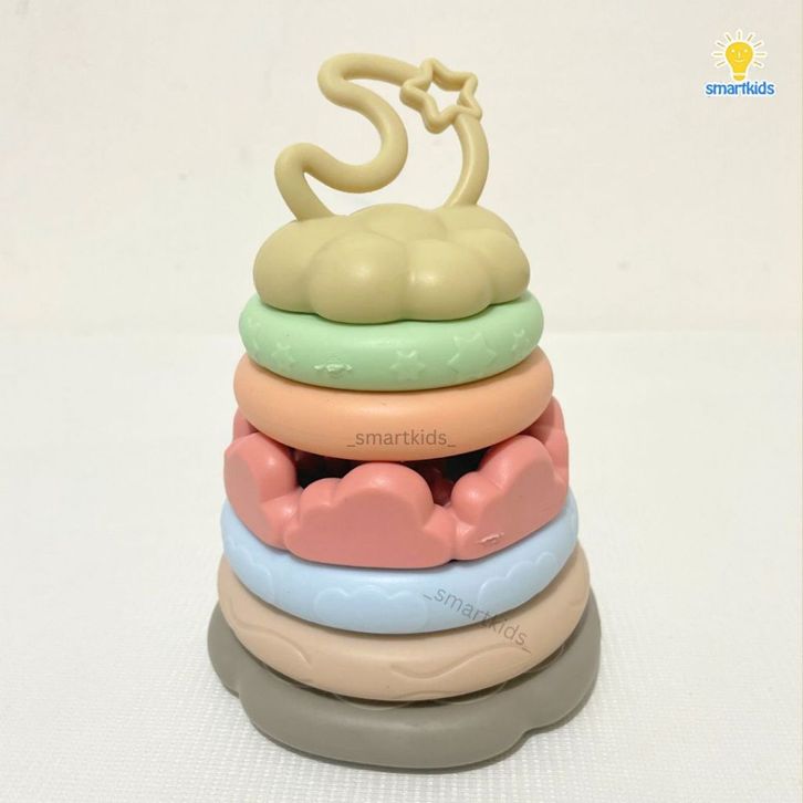 Mainan Baby Silikon Sensory Stacking Rings Bayi / Tower Susun Sortir Stack Mencocokan Bentuk Shape/ Huruf Angka Alphabet