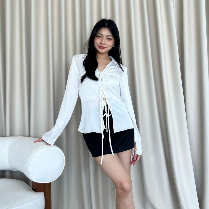Atasan Blouse Wanita Kemeja Lengan Panjang Satin Silk ODETTE TOP | ROOHA DO311