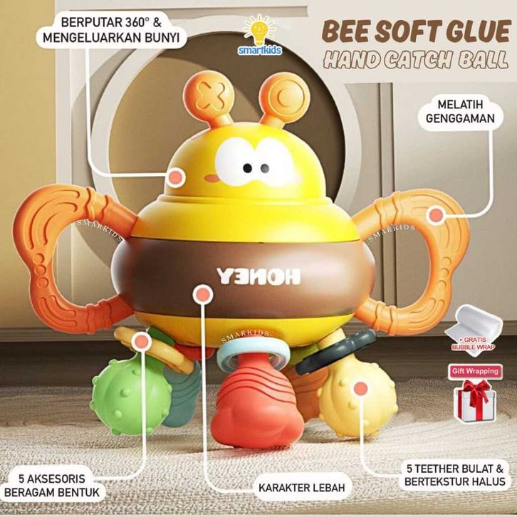 Honey Bee Mainan Bayi Teether Silikon Halus Gigitan Lembut / Busy Ball / Sensorik Motorik Mengenal Warna Bentuk Tumbuh