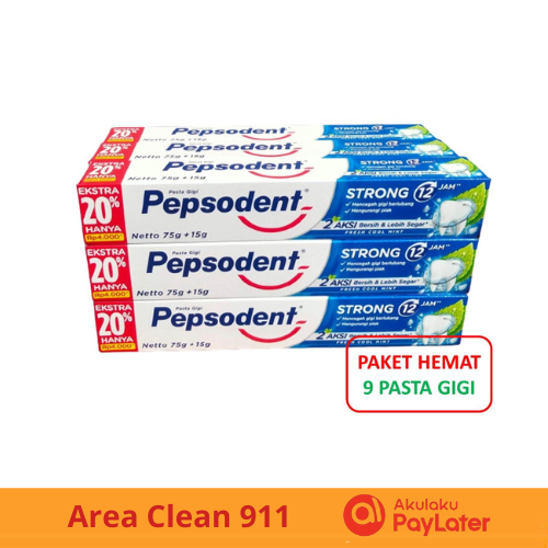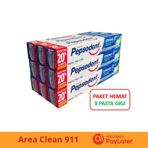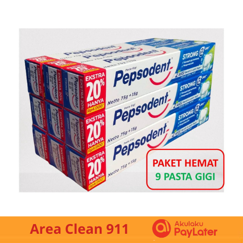 PAKET HEMAT 9 PEPSODENT STRONG ODOL 12 JAM PASTA GIGI 75GR + 15 GR EXTRA 20 PERSEN
