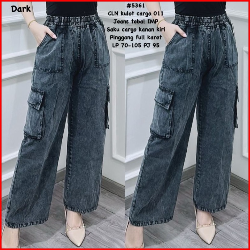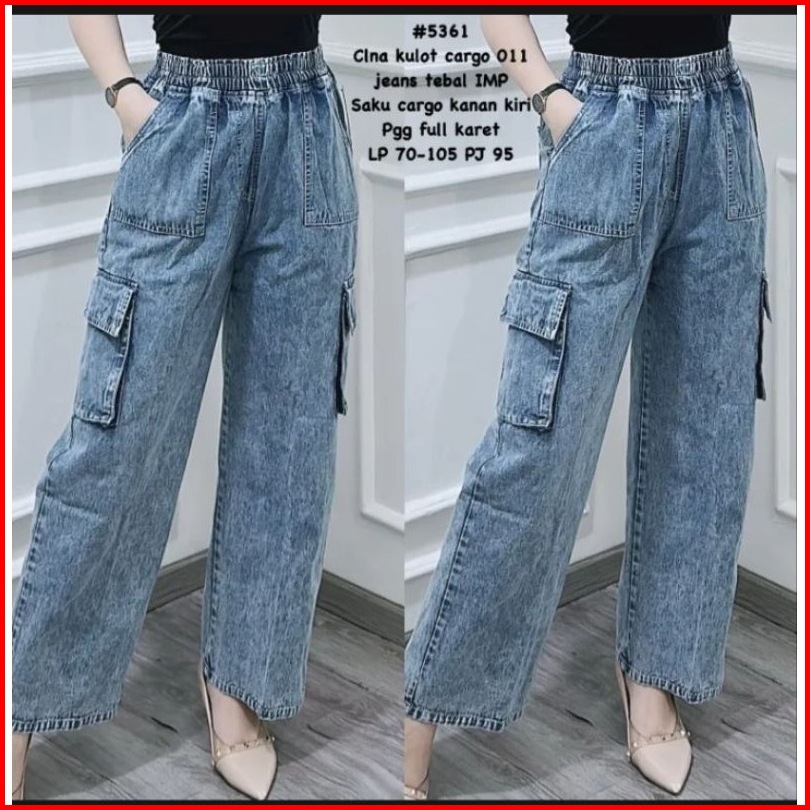 Highwaist Cargo Jeans Wanita Pinggang Karet Terbaru - Madeline Cargo Karet All Size Snow Blue Snow Black