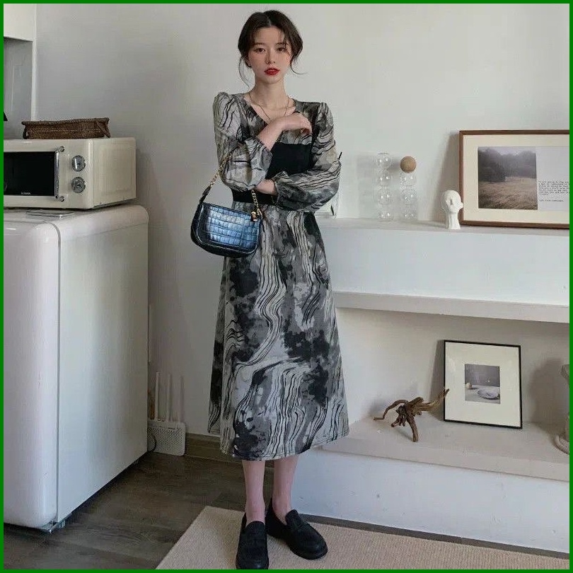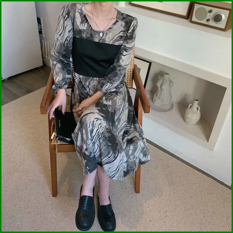 Susana Id French Long Sleeve Dress Motif Abstrak D062