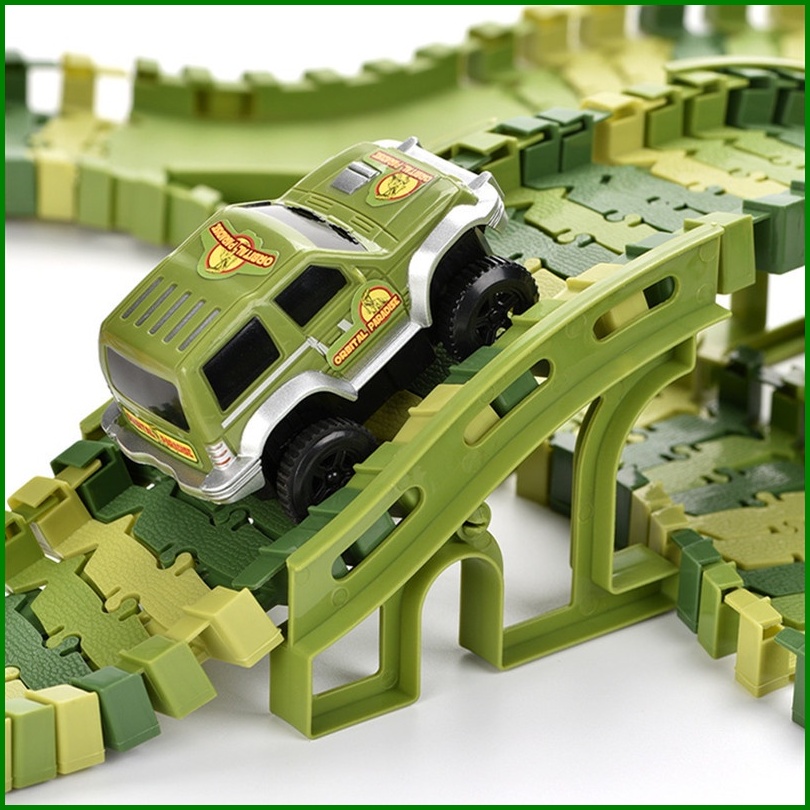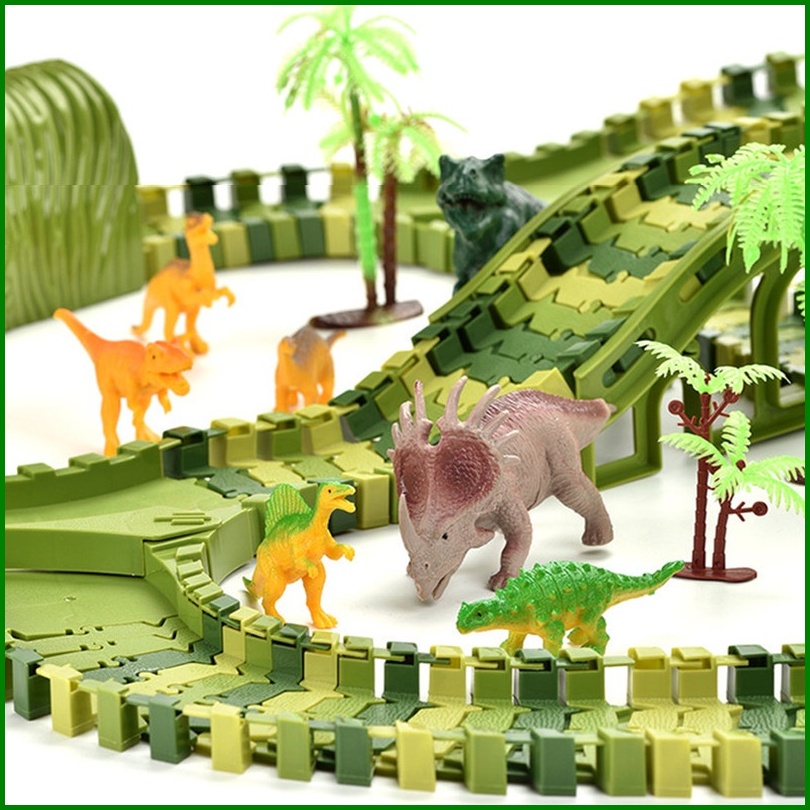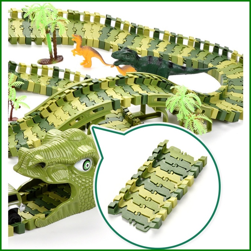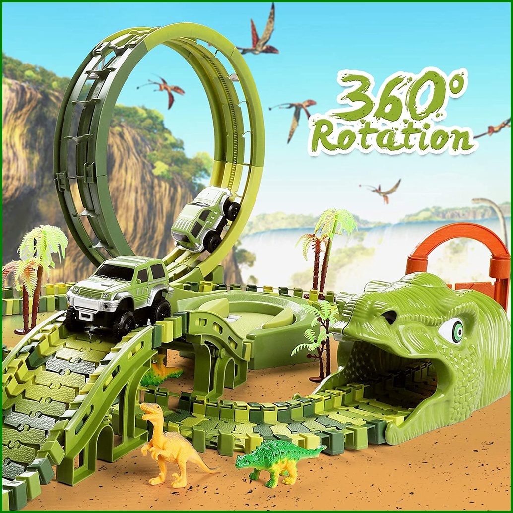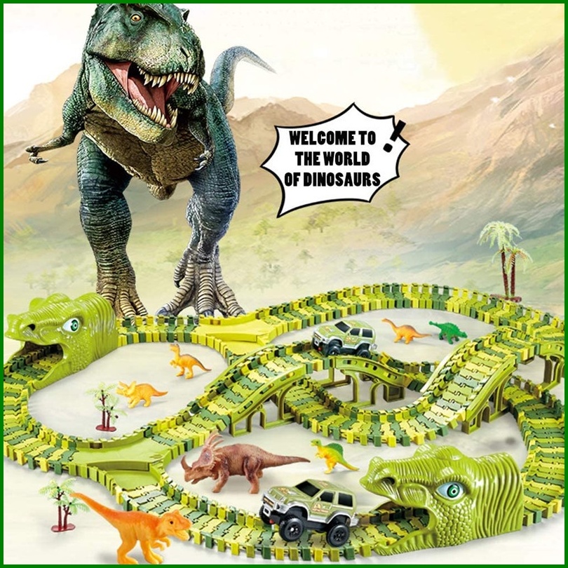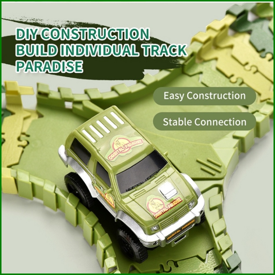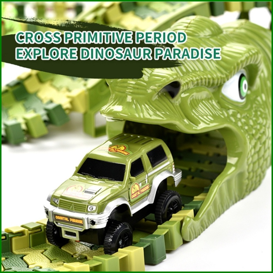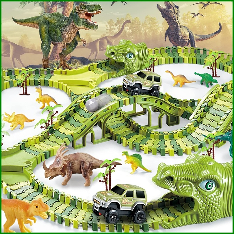 295pcs Mainan Mobil Lintasan Dinosaurus Listrik Mainan Mobil Set Diy Mobil Truk Dinosaurus Mainan Perakitan Mobil Yang M