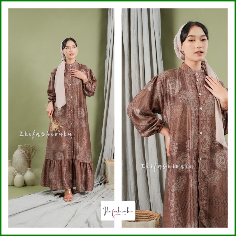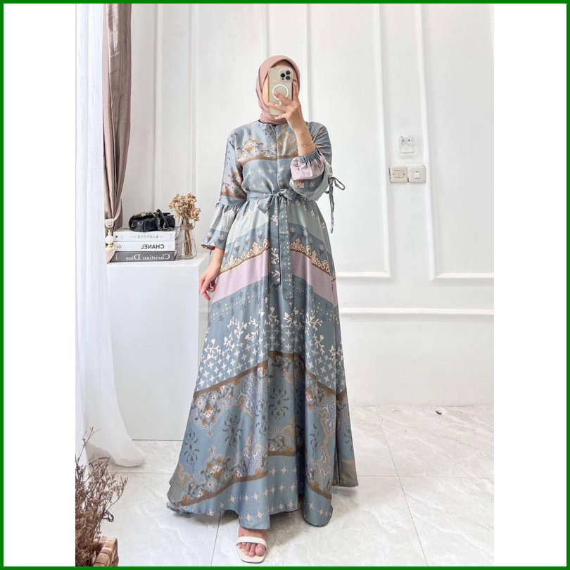 Ikifashionku - Muslim Silk Dress Gradasi Muslim Raya Bahan Silk Dress Jatuh Silky Motif Elegan Luxury Mewah