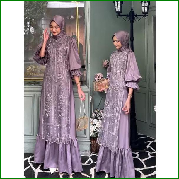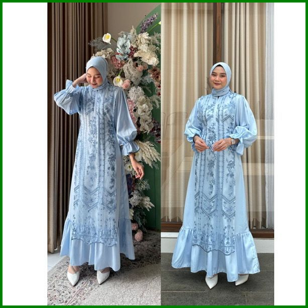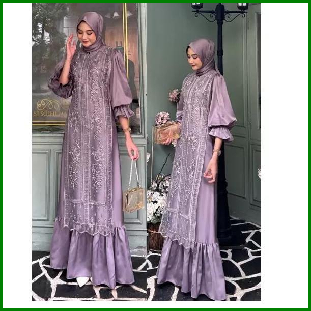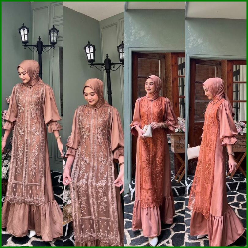 Snowy Dress Silk Mix Tille Brukat Gaun Kondangan Busui Friendly Gamis Remaja Maxi Dress Simple One Set Size M L Xl Xxl W