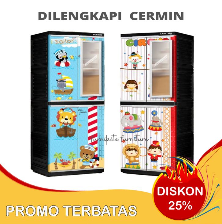 CICILAN/LEMARI PLASTIK TABITHA SUSUN 4 FULL KUNCI KARAKTER UKIRAN JEPARA