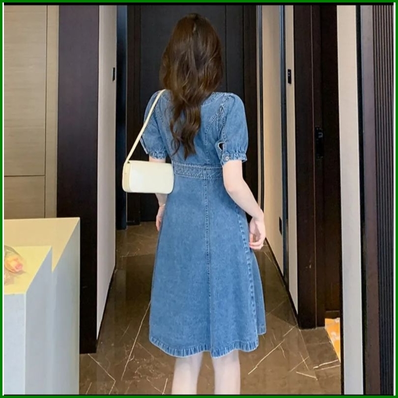 Dress Jeans Wanita Lengan Pendek Ada Tali Pinggang