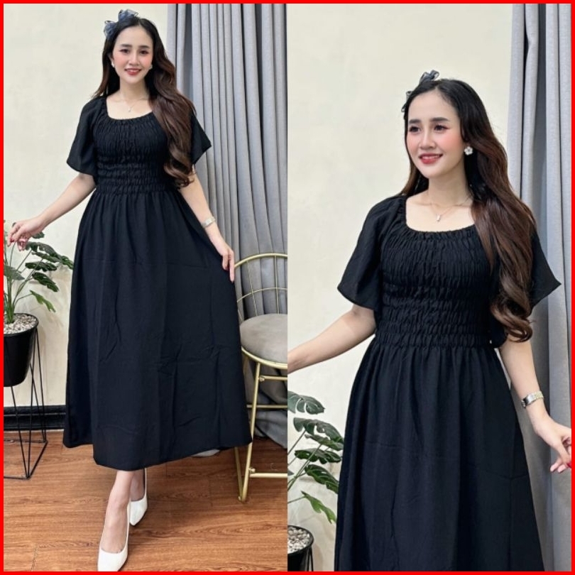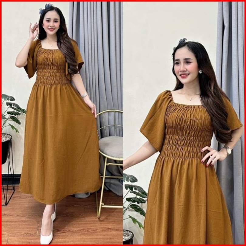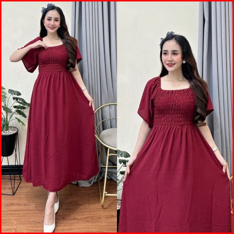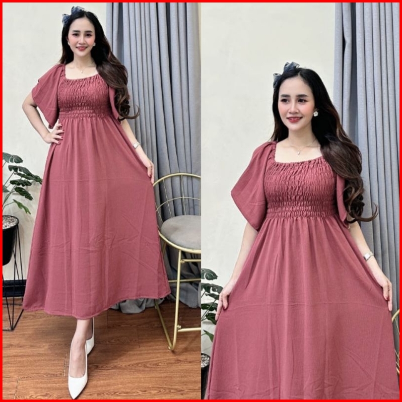 Dress Vilia Smook Crinkle Daster Kekinian Model Smooke