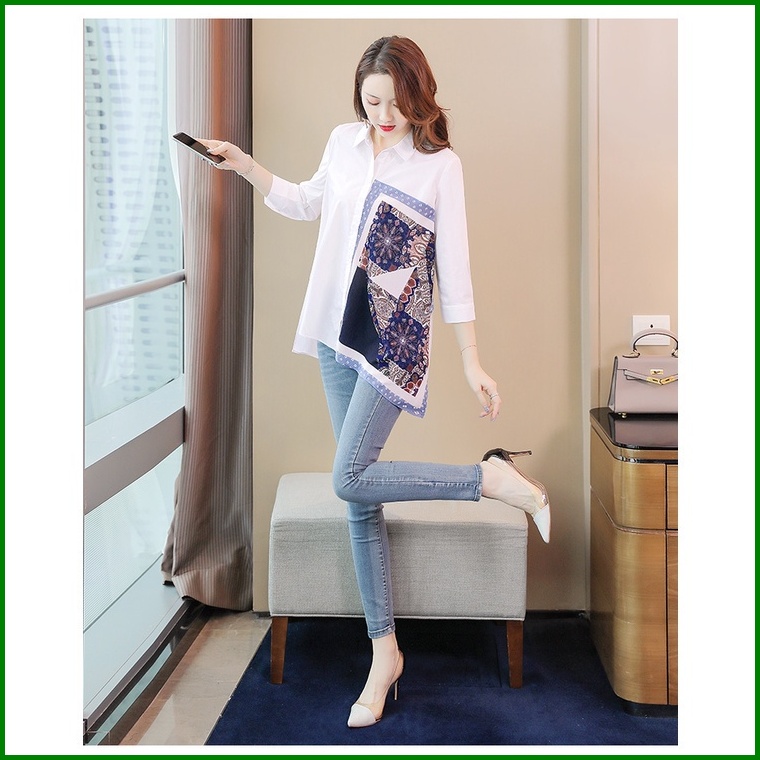 Susana Id Blouse Kemeja Motif Batik Abstrak Lengan 7 4 T107