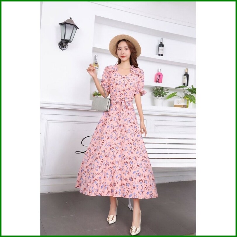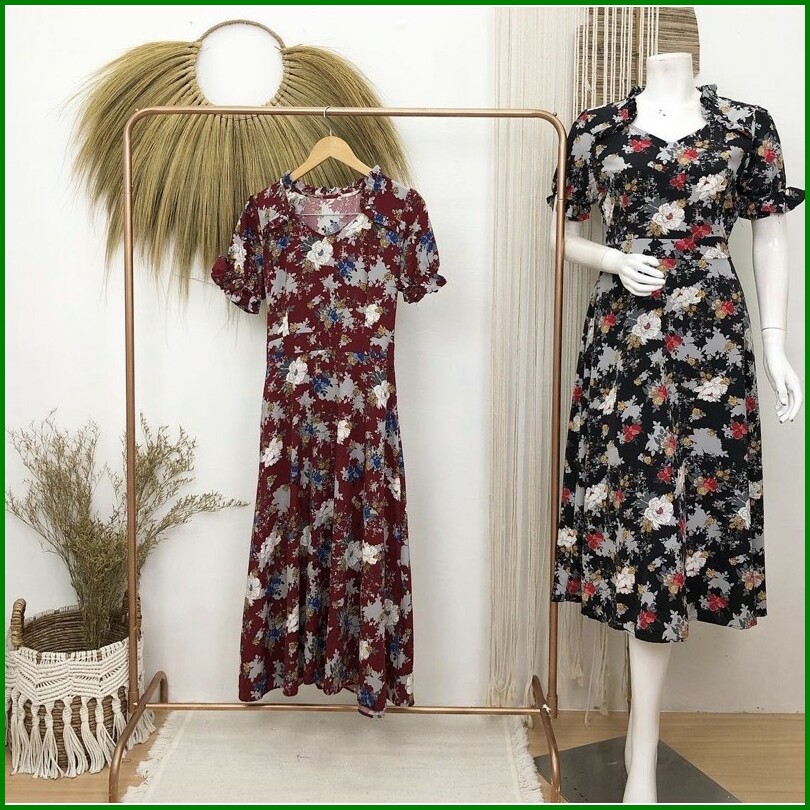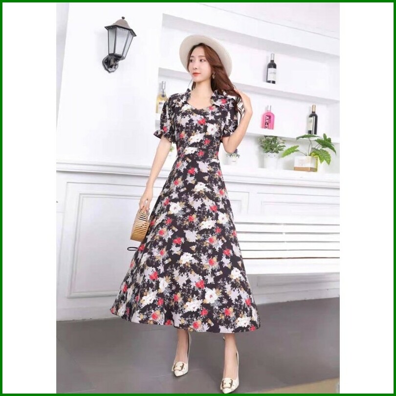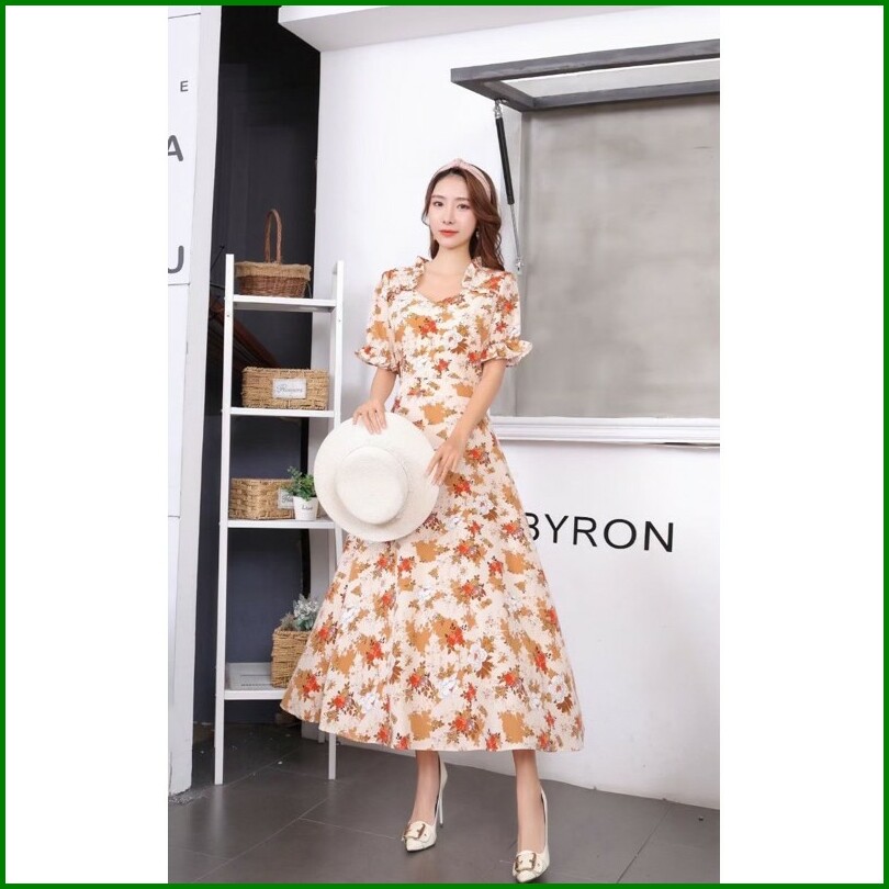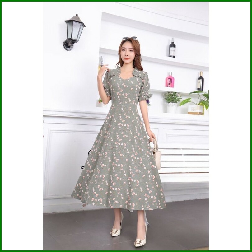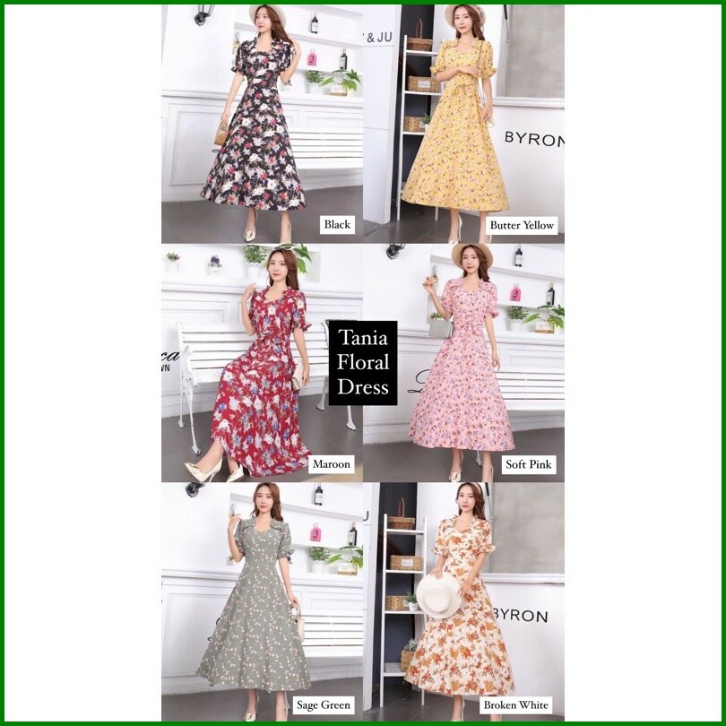 D0467 Tania Korean Floral Maxi Vintage Dress Hijab