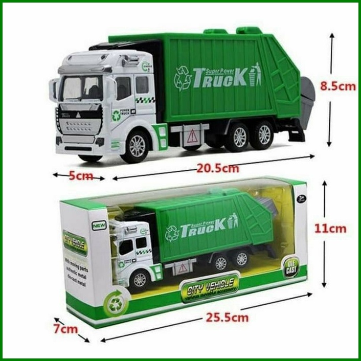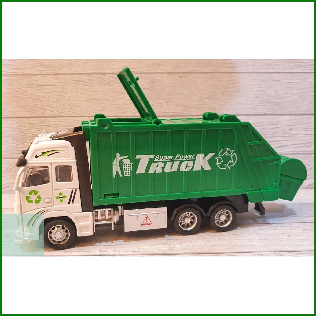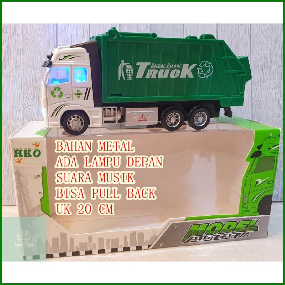 Mainan Diecast Truk Sampah Pull Back Metal Die Cast Truck Lampu