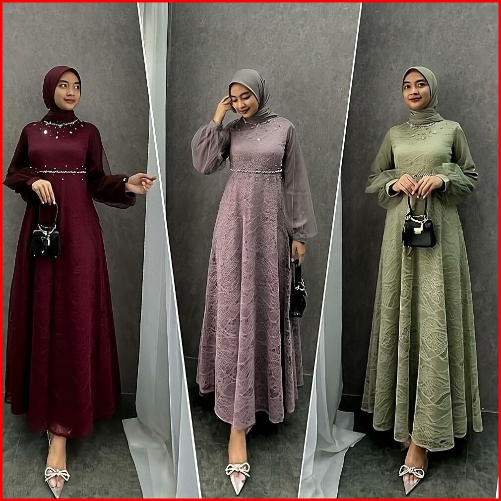 Model Baru Gamis Nadine Gaun Maxi Dress Brukat Fashion Cewek Seragam Wanita Remaja Dres Brokat