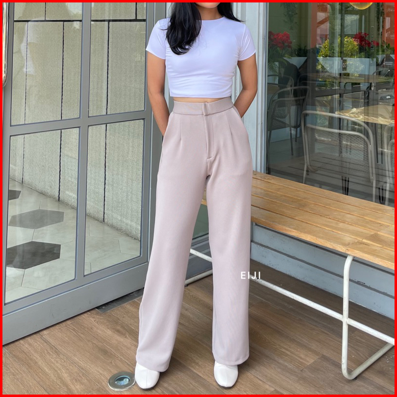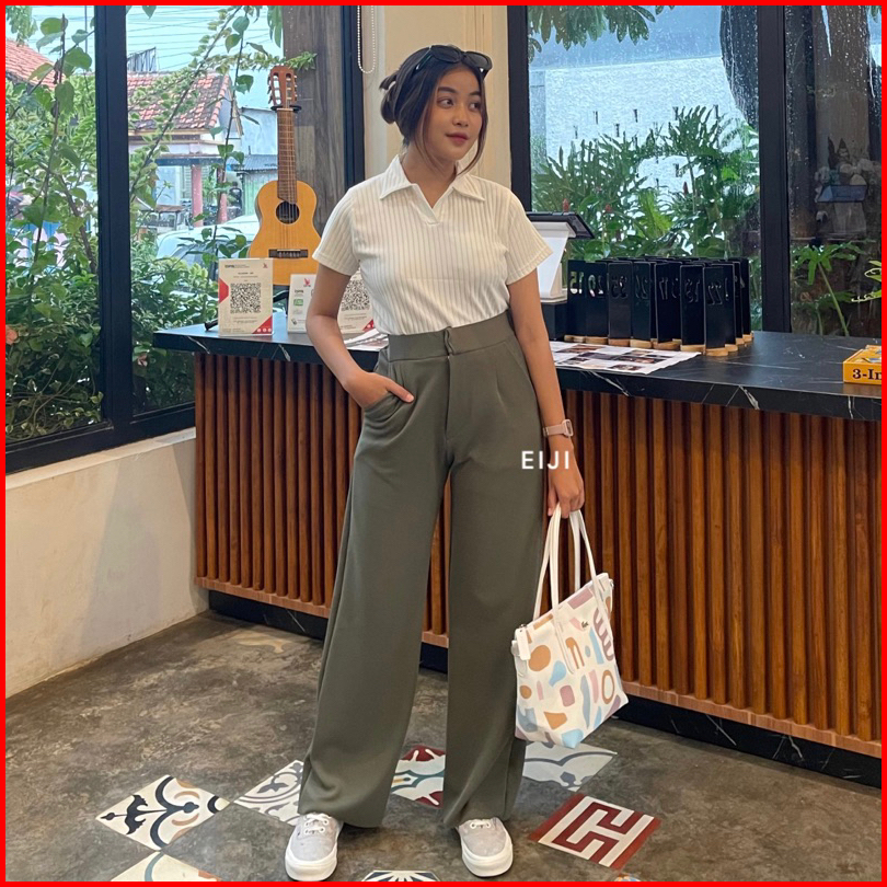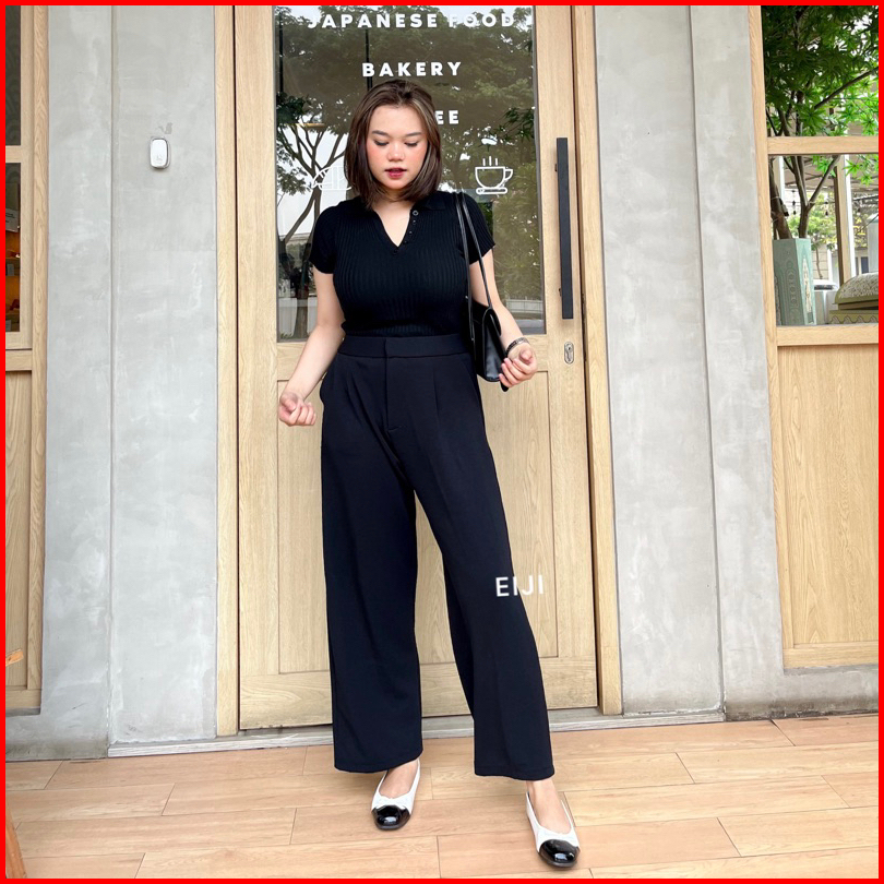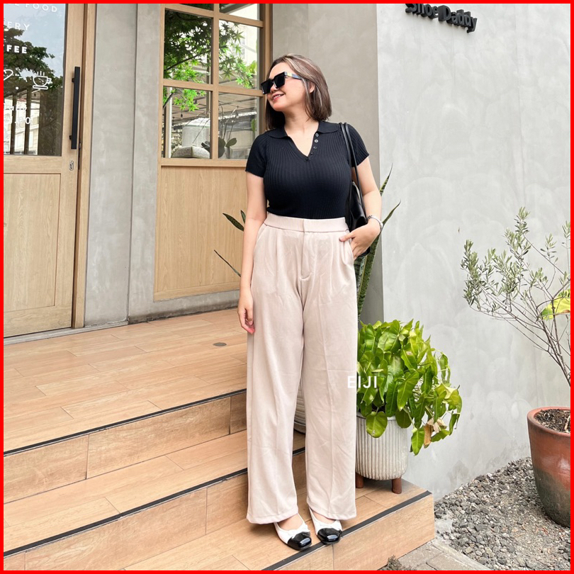 Cozie Pants Ukuran Besar Big Size Jumbo Knit Pants - Celana Highwaist Panjang Wanita Kulot Rib Anti Kusut - Celana Outfi