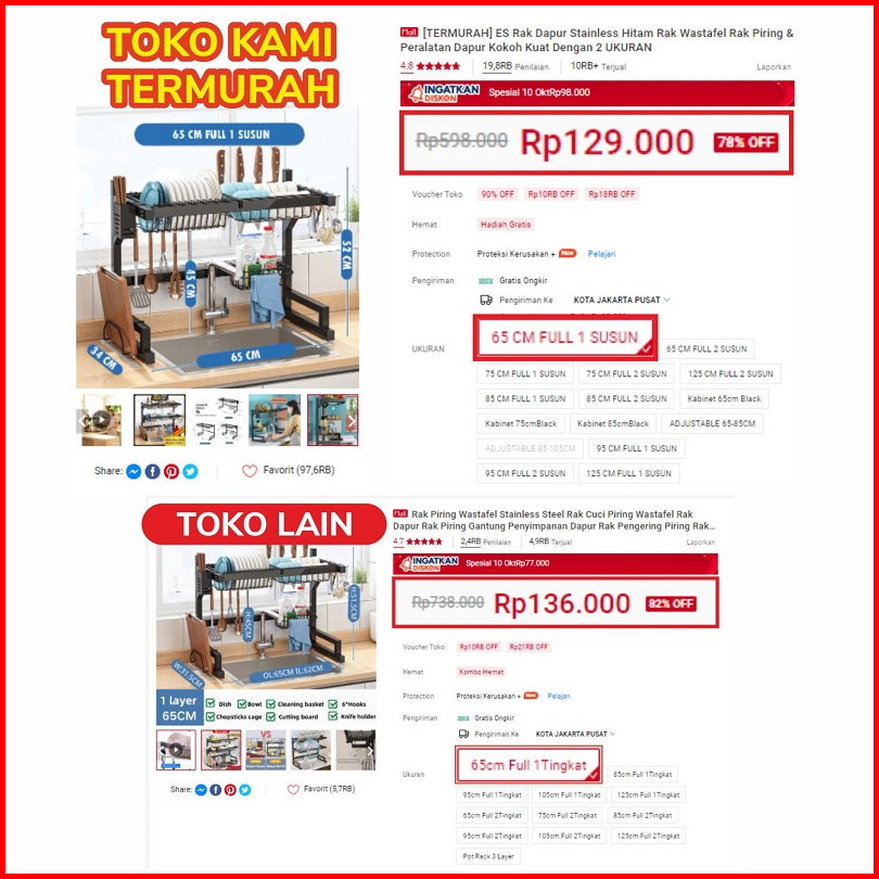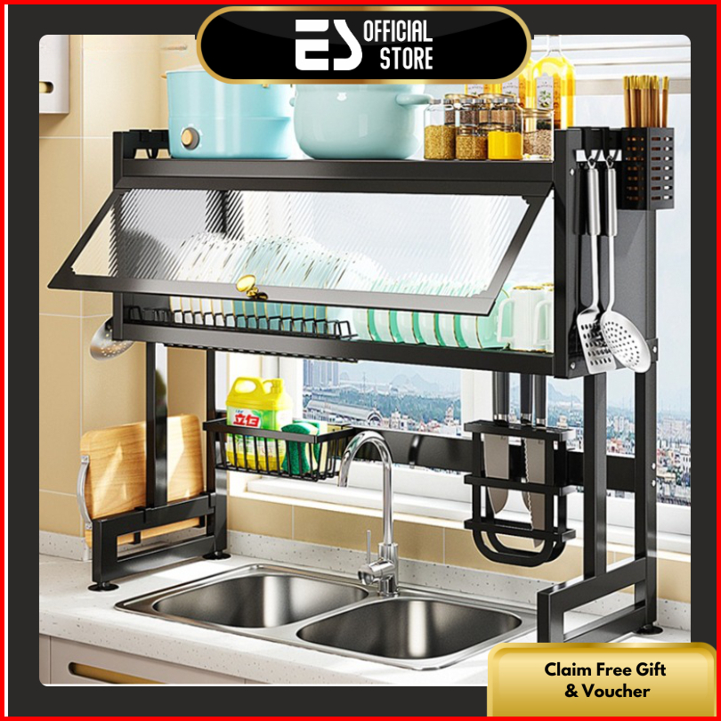 Es Rak Piring Wastafel Rak Dapur Stainless Steel Dengan Penutup Kabinet Rak Penyimpanan Piring Kokoh Kuat