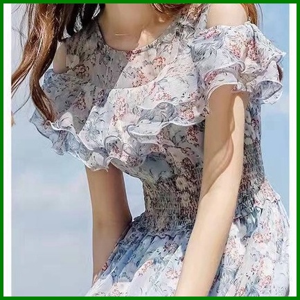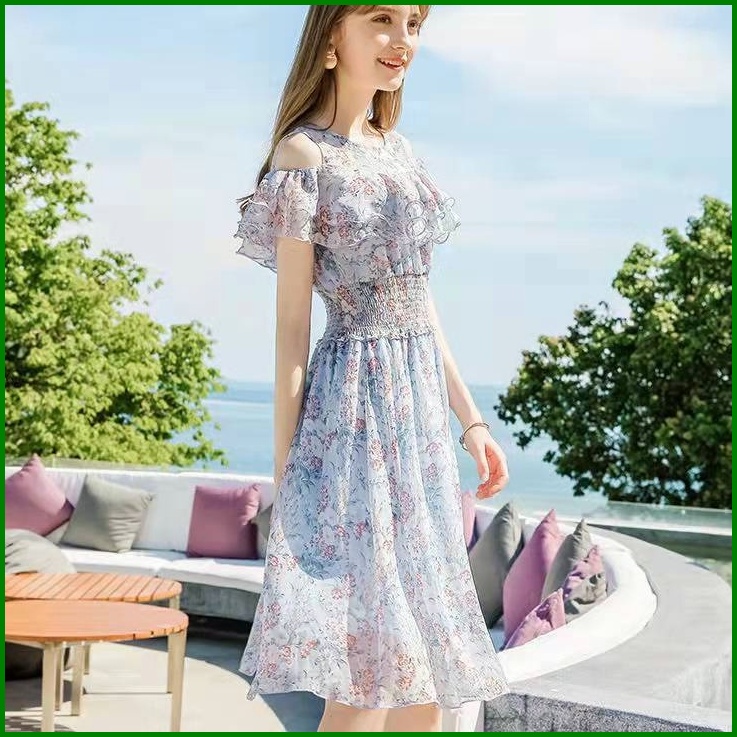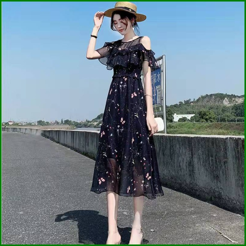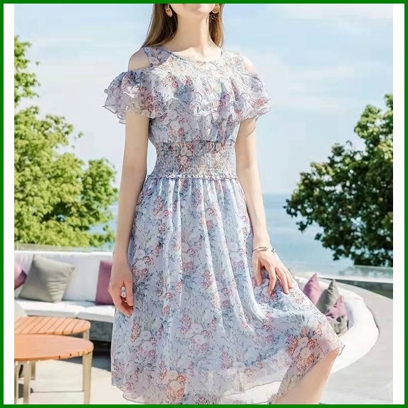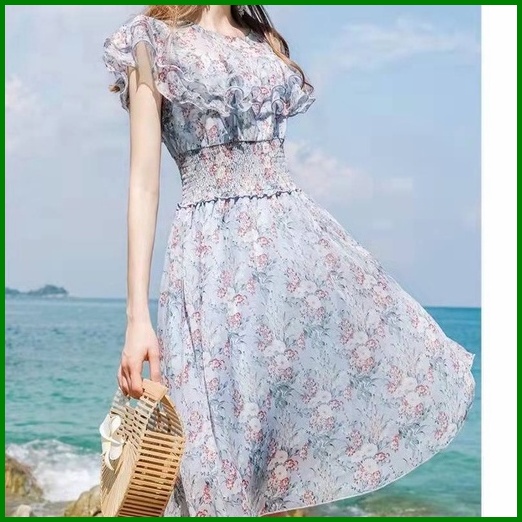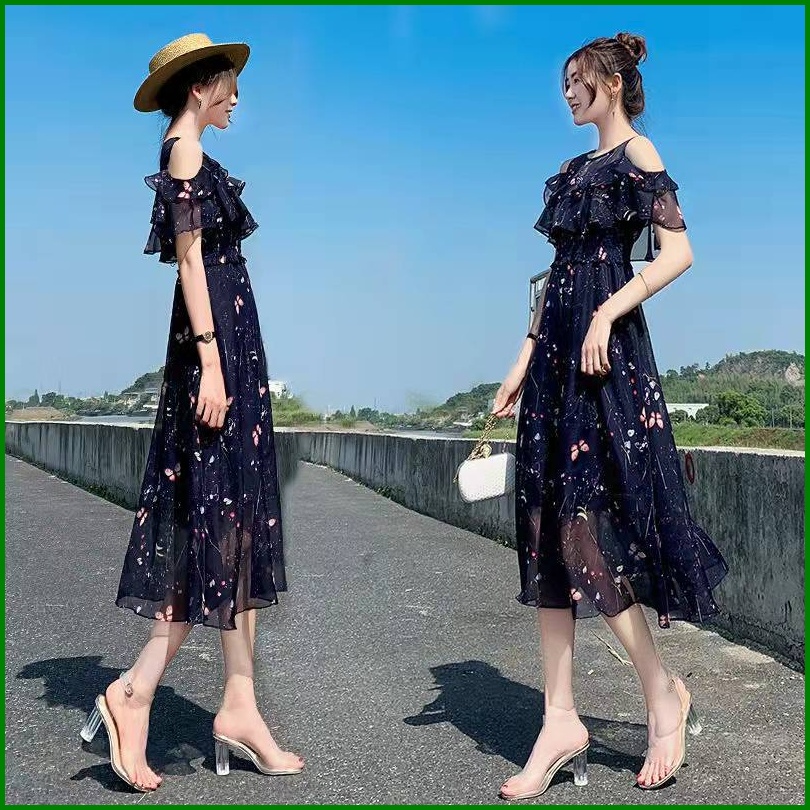Korean Dress Dress Korean Style Dress Koreadress Korea Midi Dress Long Dress Dress Korean Style Wanita Gaun Bunga Sifon