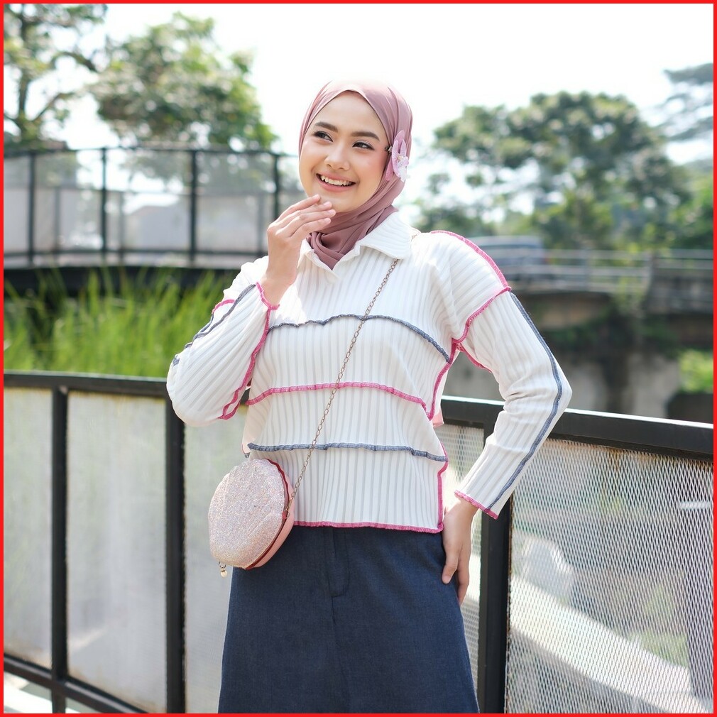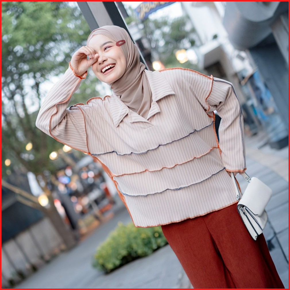 Mybamus Yuna Playfull Knit Tops Atasan Muslim Wanita Blus Knit Lengan Panjang