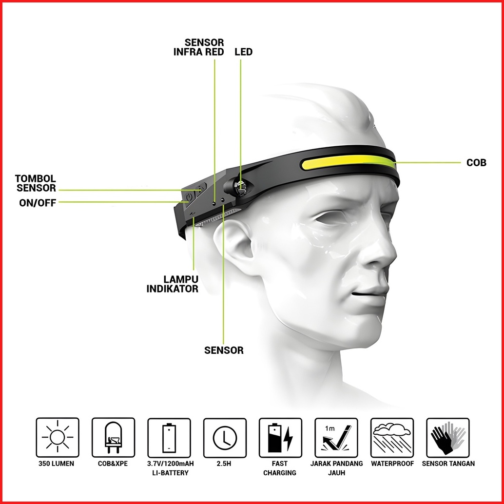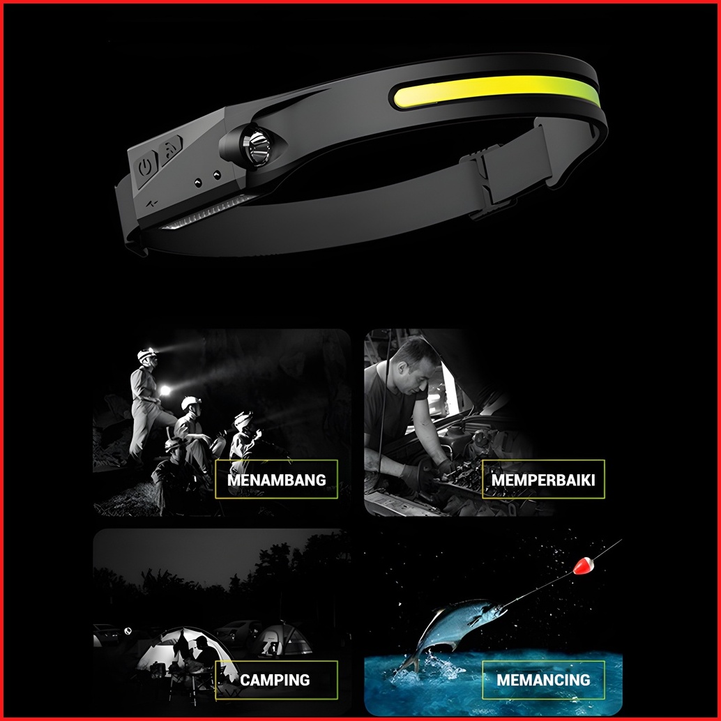 Suksestech Senter Kepala Cas Headlamp Flashlight Motion Sensor 5 Mode Led Cob Xpe Yt200