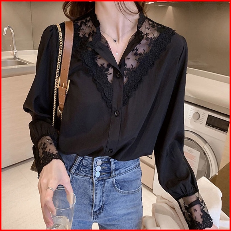 Violet Blouse Renda Lengan Panjang Wanita Korean Style